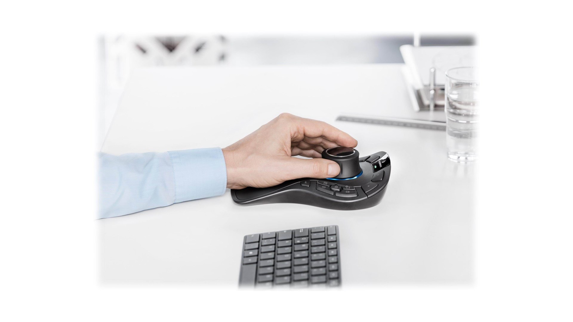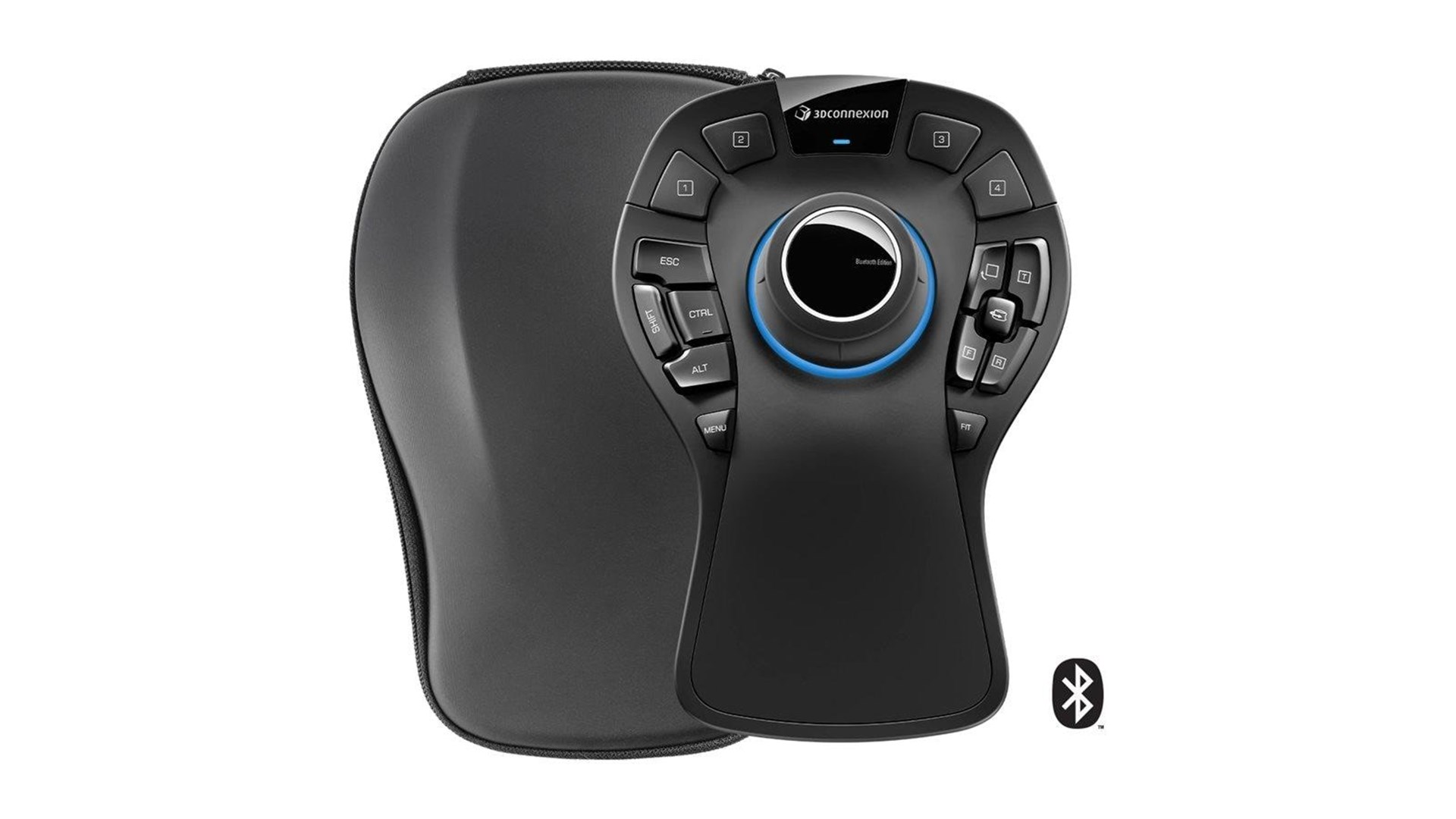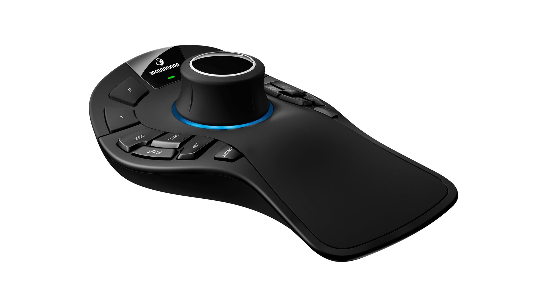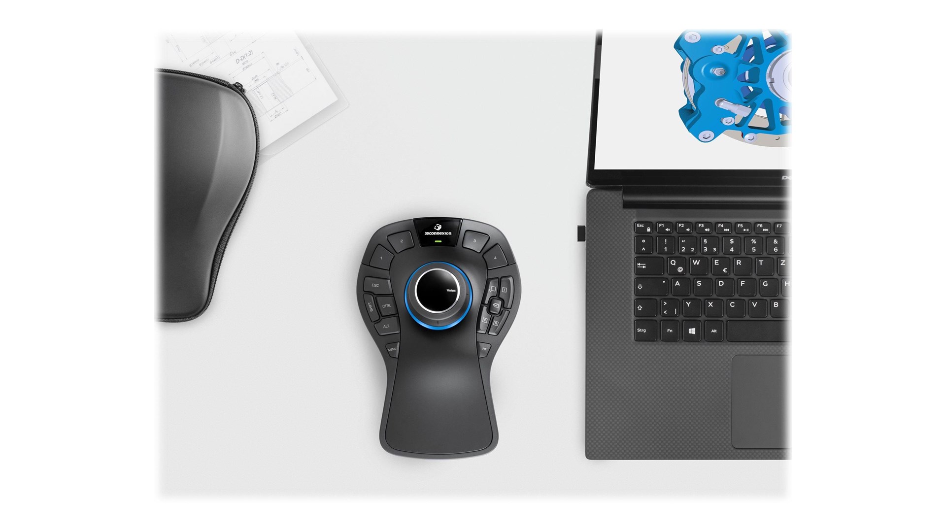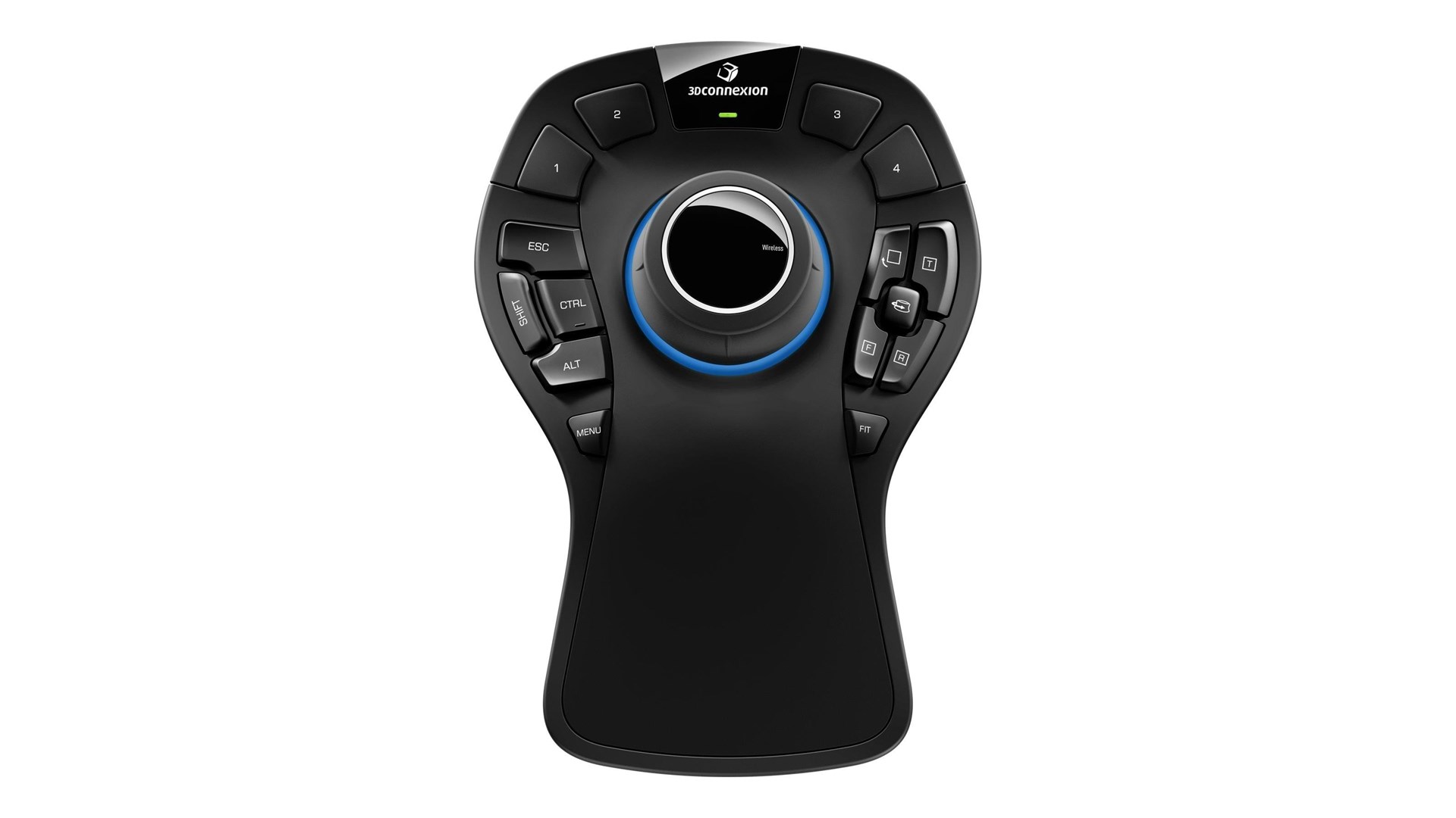Tastaturmodifikationer (Ctrl, Alt, Shift, Esc), On-screen Display (OSD), QuickView Keys, rotationslåseknap, 15 programbare knapper, 3Dconnexion 2, 4 GHz trådløs teknologi, 3Dconnexion seks-grader-af-frihed (6Dof) sensor, Bluetooth Low Energy Compatible, genopladeligt batteri