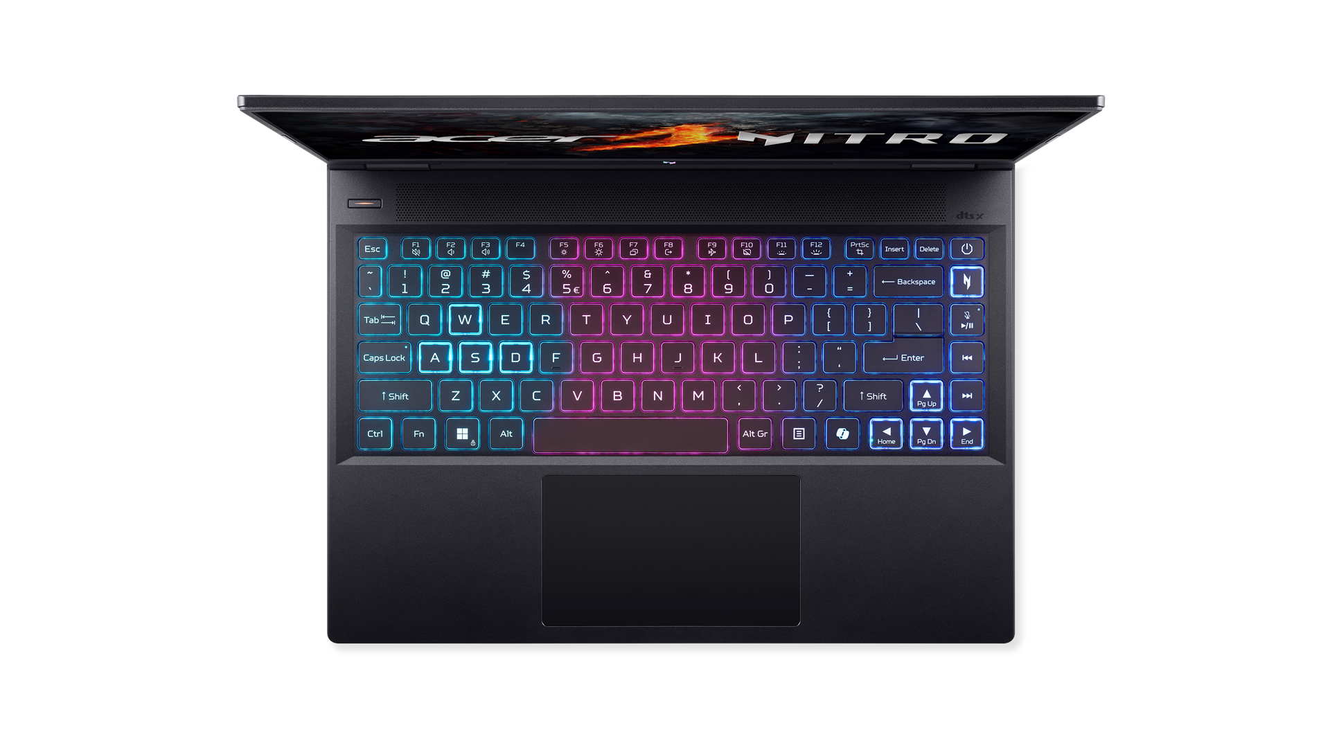 Multi-gestus touch pad, præcisions-touchpad, 3 RGB-zoner, Copilot-nøgle, Nitro Sense-nøgle, 1.3 m rejselængde