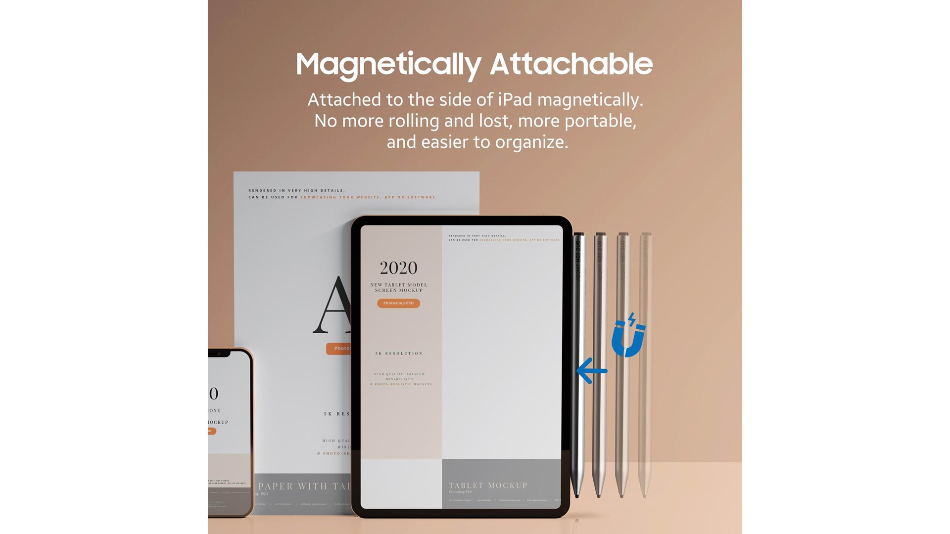 Palm Rejection teknologi, magnetisk påsætningsområde, udskiftelig spids