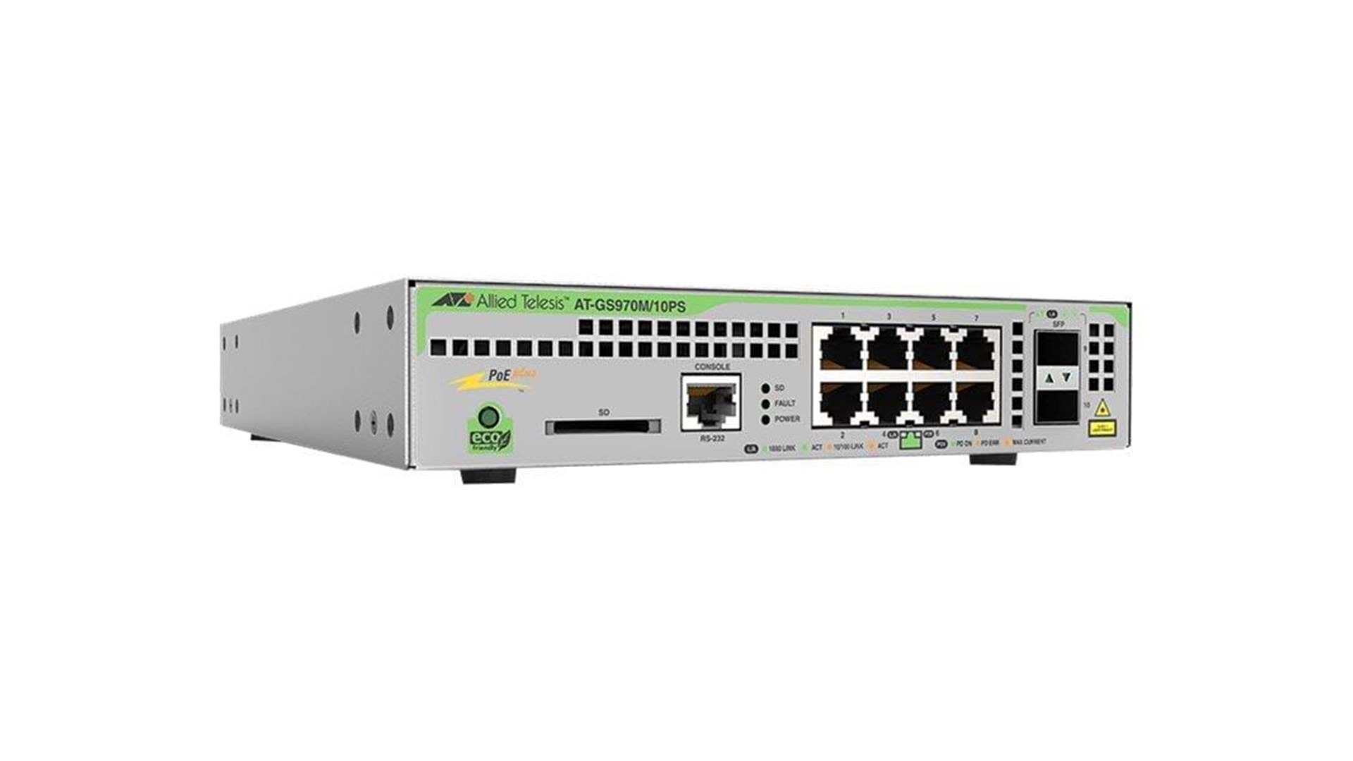 8 x 10/100/1000 (PoE+) + 2 x SFP (mini-GBIC) (uplink)
