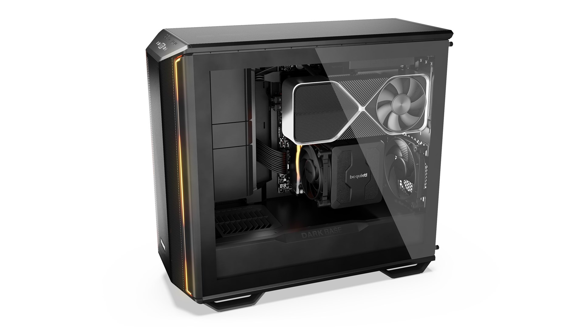 Designet er både elegant og praktisk. Stålrammen giver en solid konstruktion, mens de støjsvage ventiler, designet af be quiet!, sikrer, at din arbejdsplads forbliver stille, selv ved maksimal drift. Derudover er tårnet udstyret med en stor sidevæg af glas, så du kan fremvise dit hardware-setup på en stilfuld måde.