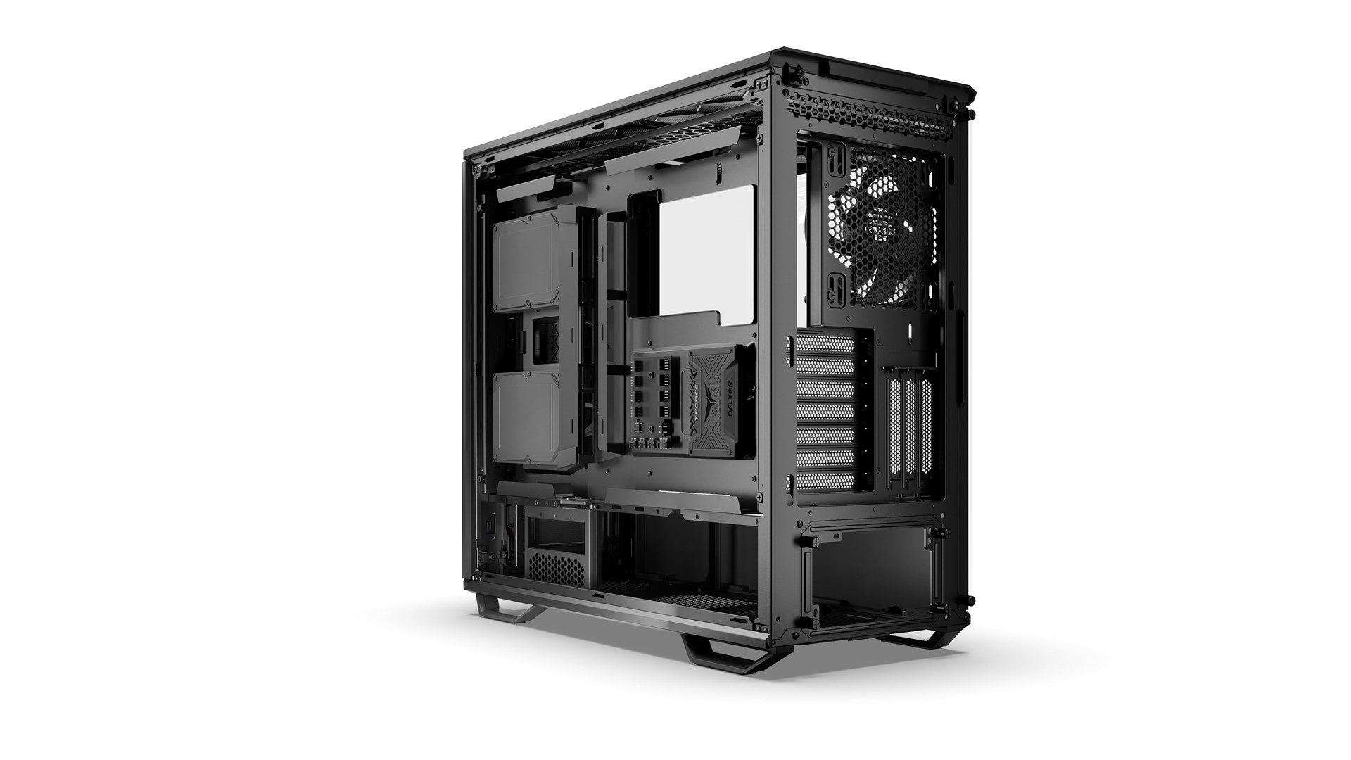 I takt med at behovene for opbevaring vokser, tilbyder tårnet adskillige interne skuffer og pladser til HDD og SSD, som kan tilpasses efter behov. Dette gør det muligt for brugerne at forstærke deres system med ekstra lagringsplads uden besvær.