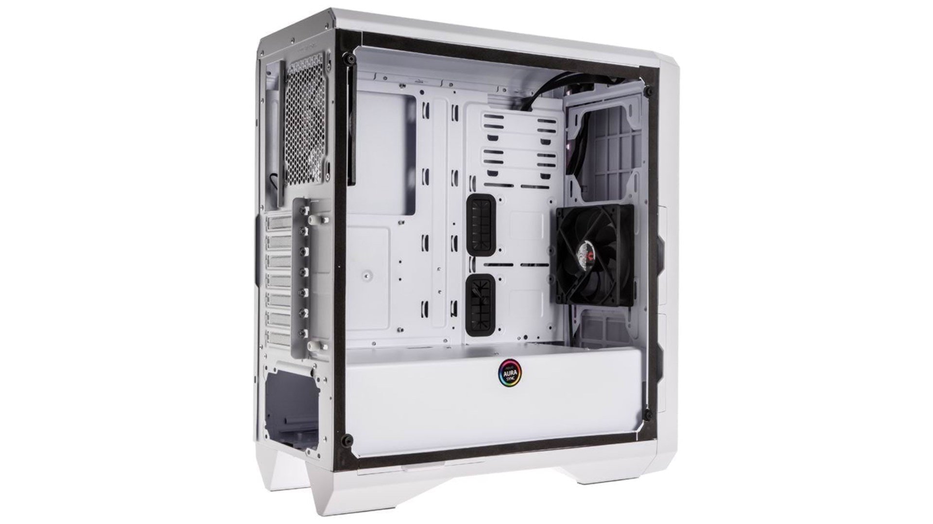 Sammenvævet top, kabeladministrations-system, understøtter 120 mm radiator i bagpanel, understøtter 240/280 mm radiator i frontpanel, aftagelige støvfiltre, ASUS Aura Sync RGB illumination