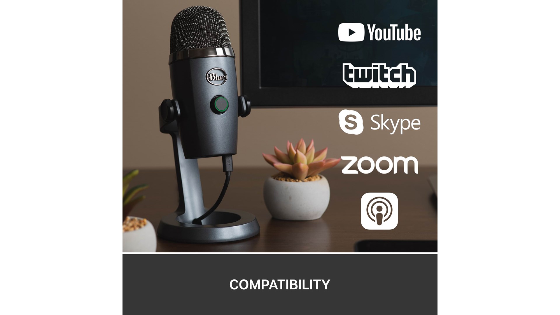 Designmæssigt er Yeti Nano både stilfuld og praktisk, tilgængelig i en elegant skyggegrå farve, der passer ind i ethvert setup. Den indbyggede volumenregulator og mute-knap giver brugeren kontrol, mens LED-statuslampen hurtigt signalerer, om mikrofonen er aktiv.