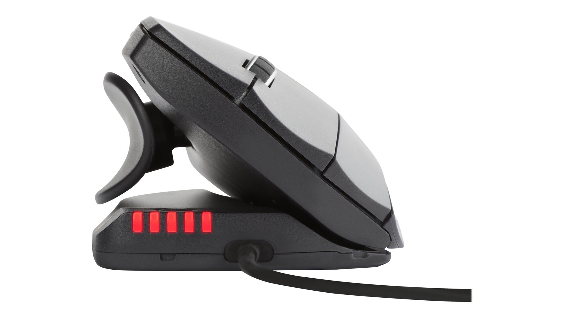 Rullehjul, 6 programbare knapper, justerbar hældningsvinkel, Pixart PMW 3330 optisk spilsensor, artikulerende tommelstøtte