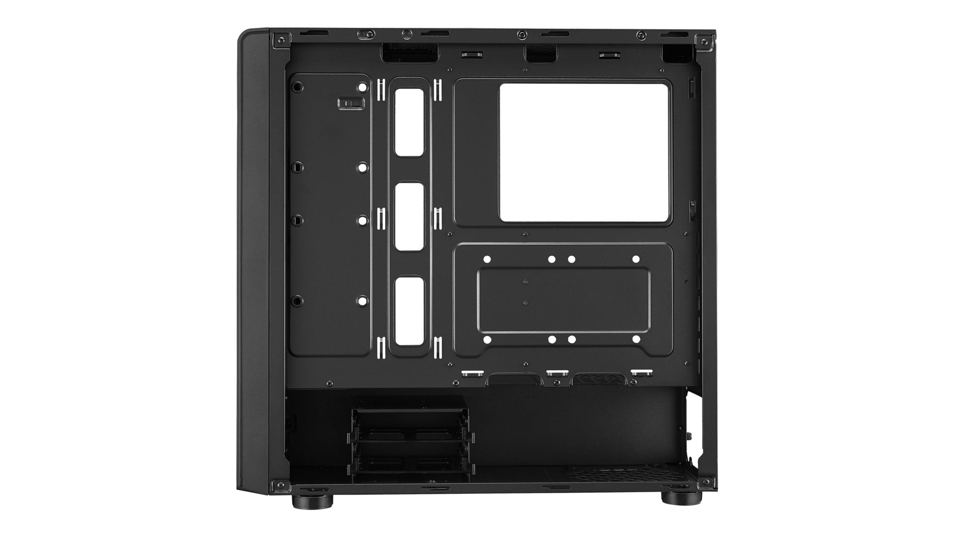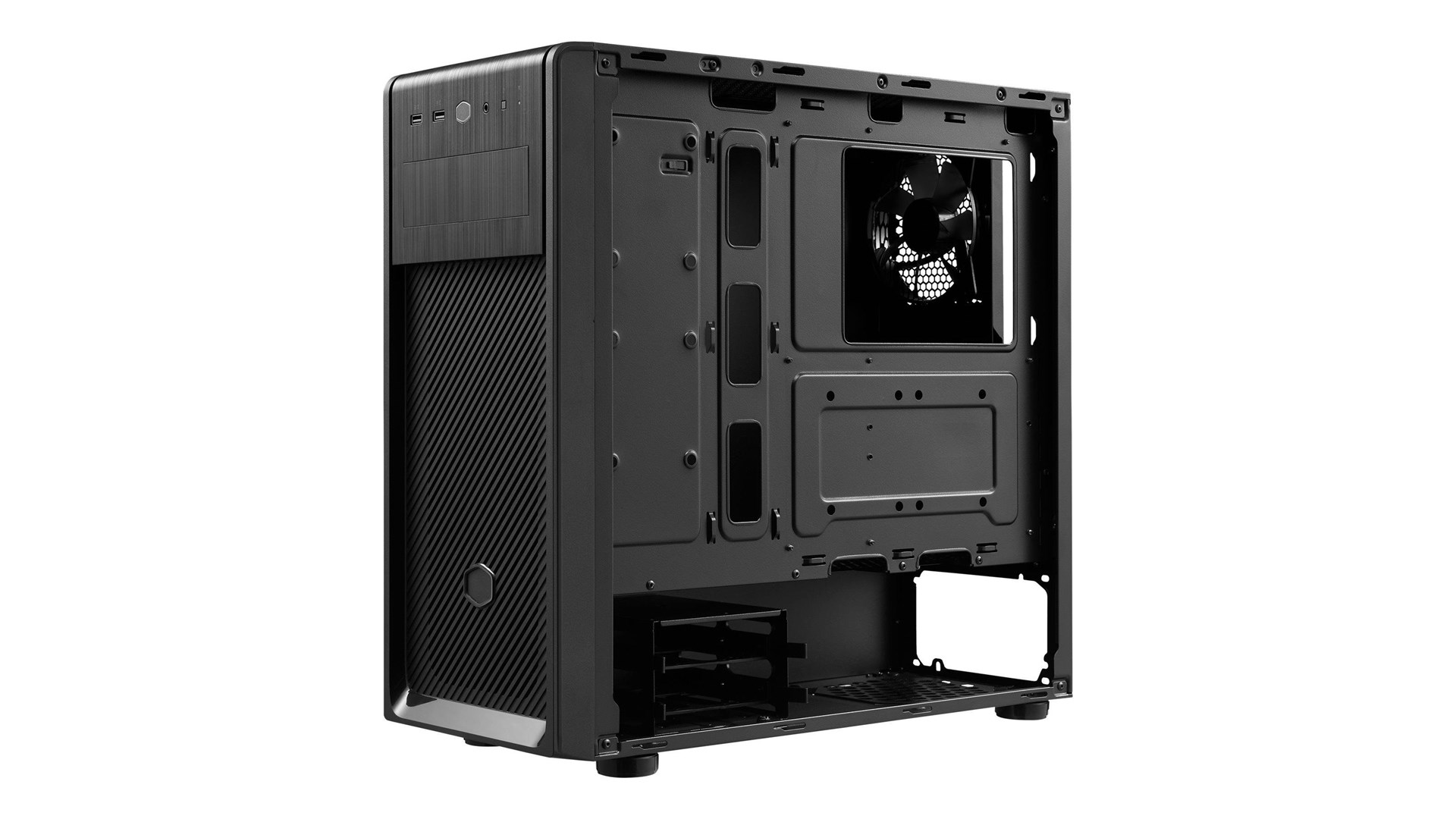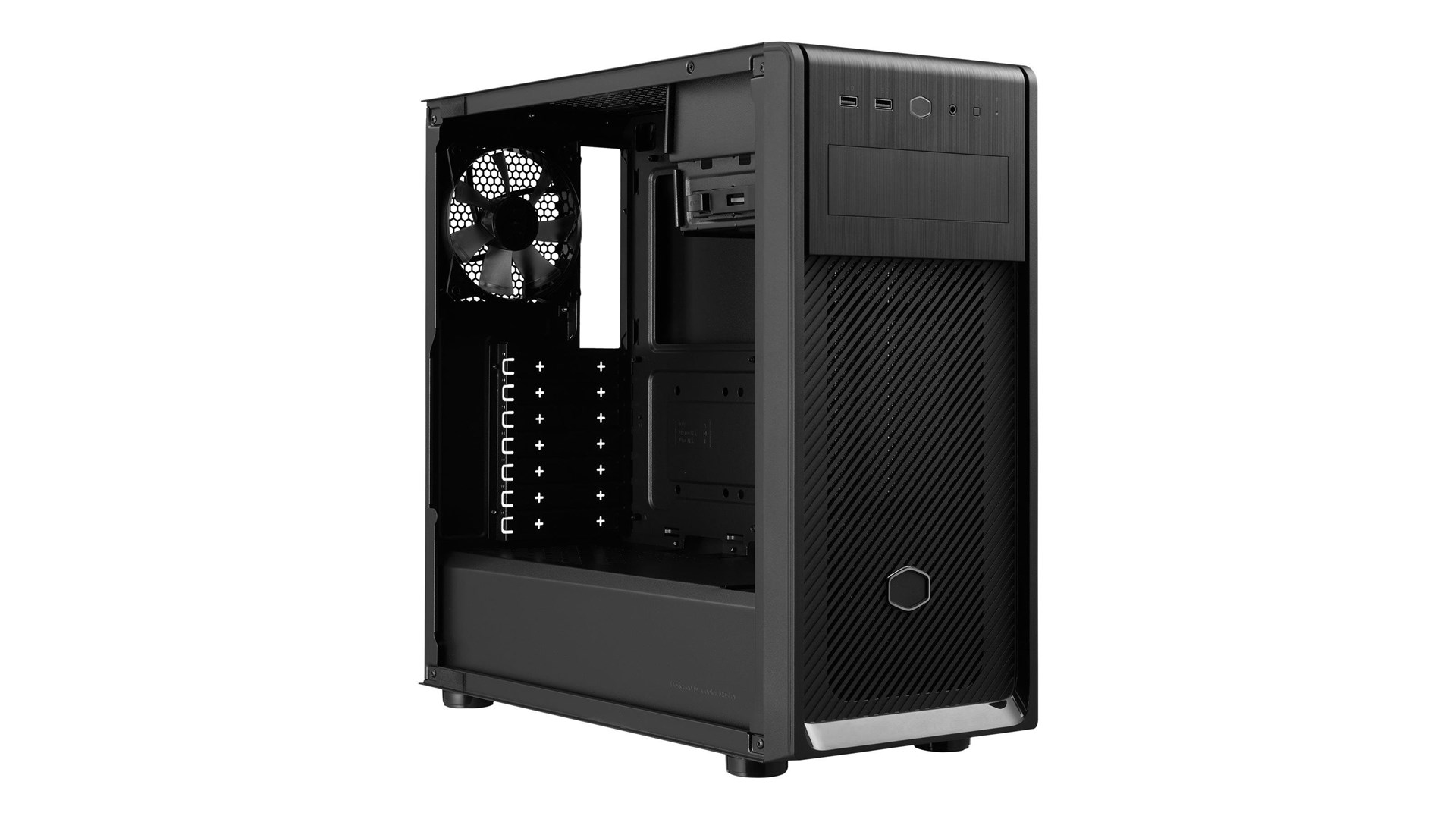 Med generøs plads til både grafikkort og CPU-kølere giver Cooler Master Mid Tower mulighed for at opbygge en maskine med høj ydeevne. Den understøtter flere 120mm eller 140mm blæsere og har plats til både HDD og SSD, hvilket betyder, at du kan konfigurere dit system præcist som du vil. Hvis du ønsker at tilføje ekstra tilbehør eller opgradere dit system i fremtiden, tilbyder kabinettet rigeligt med muligheder.