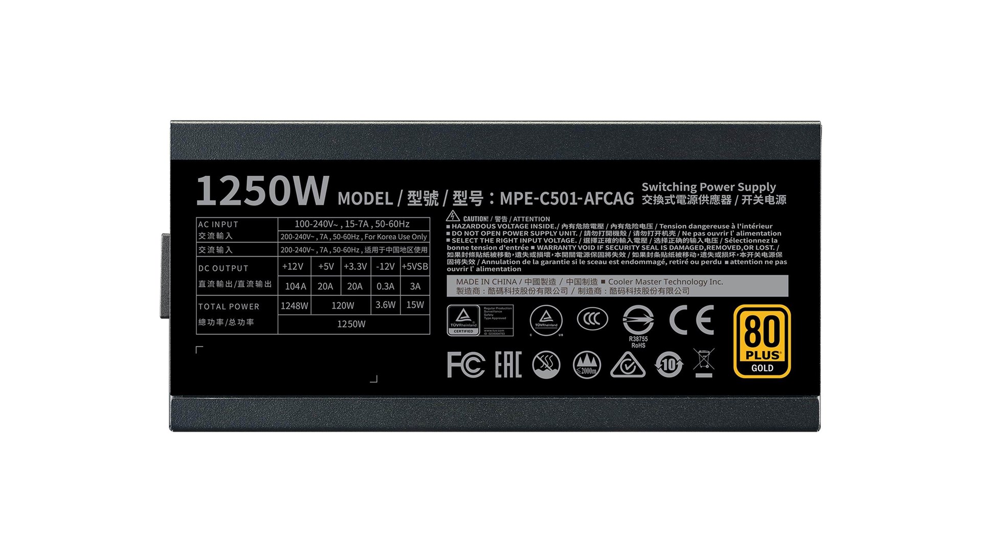 Cooler Master har udført strenge tests for at sikre, at MPE-C501-AFCAG-EU opfylder de højeste standarder for ydeevne og sikkerhed. Den 80 PLUS Gold certificering bekræfter, at strømforsyningen har en minimum effektivitet på 90%, hvilket kan hjælpe med at reducere elregningen og mindske den samlede energiforbrug af dit system.