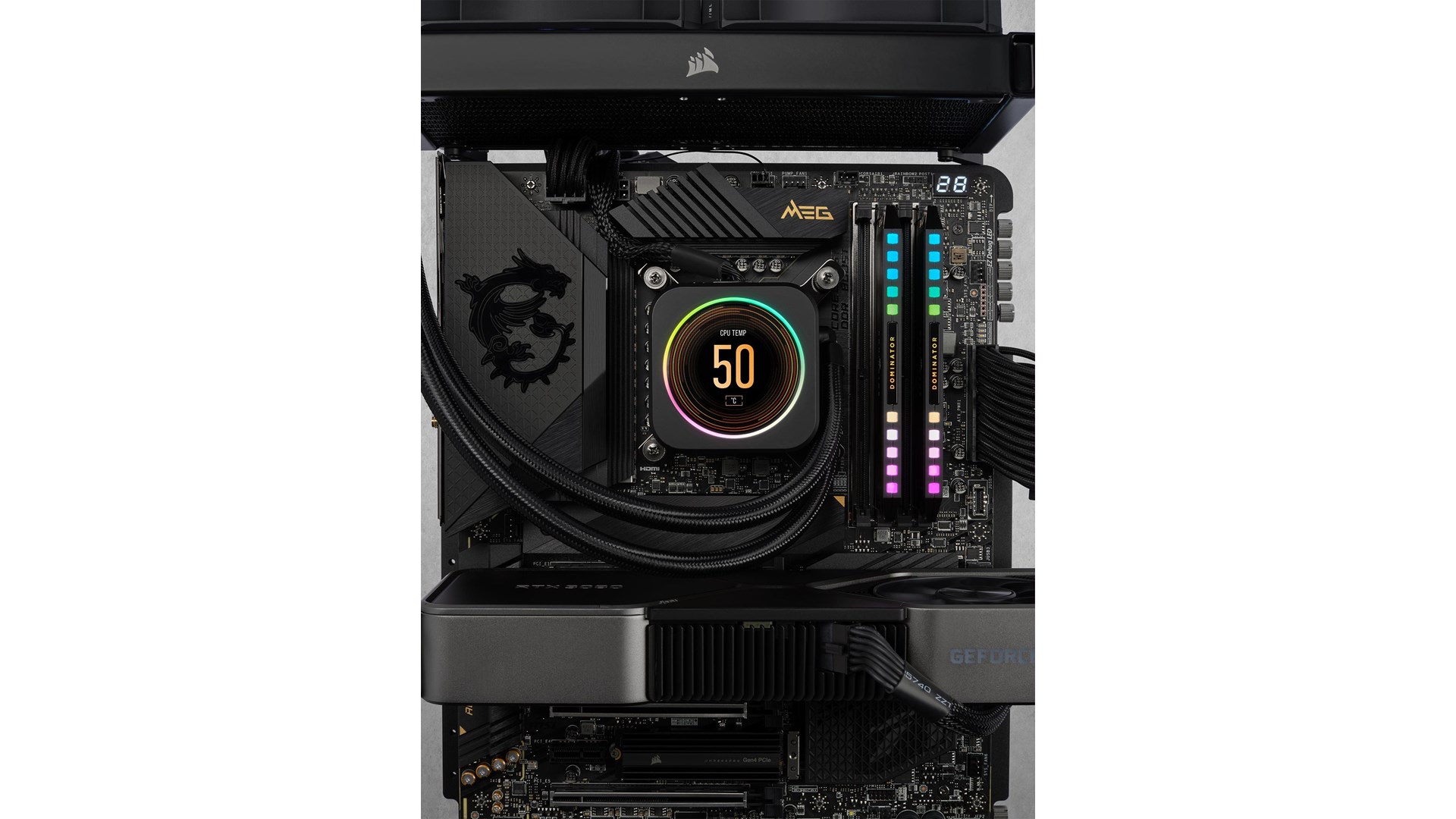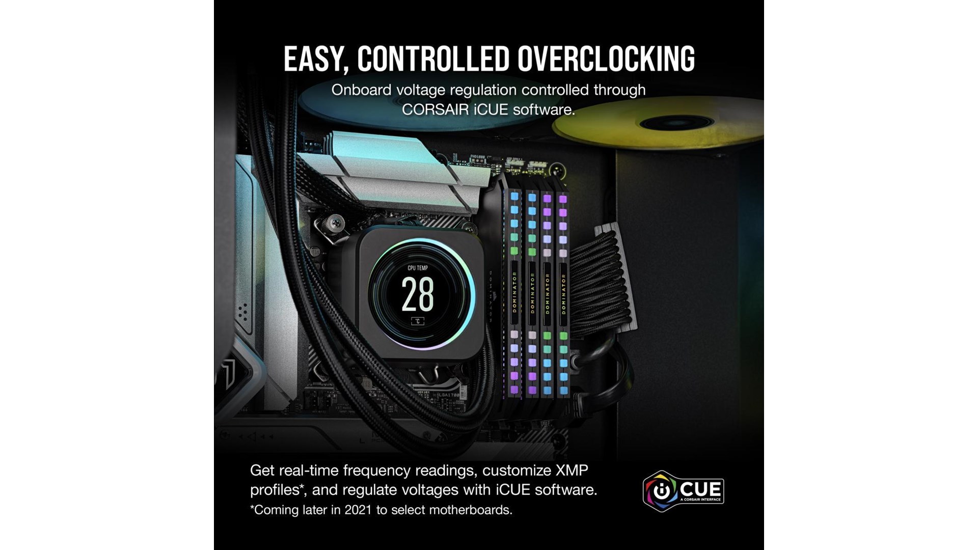 Intel Extreme Memory Profiles (XMP 3.0), 12 ultralyse individuelt addreserbare CAPELLIX RGB LEDer, Dual-path Heat Xchange (DHX), aluminium varme spreder, Corsair iCUE support, indbygget overclocking Power Management IC (PMIC)