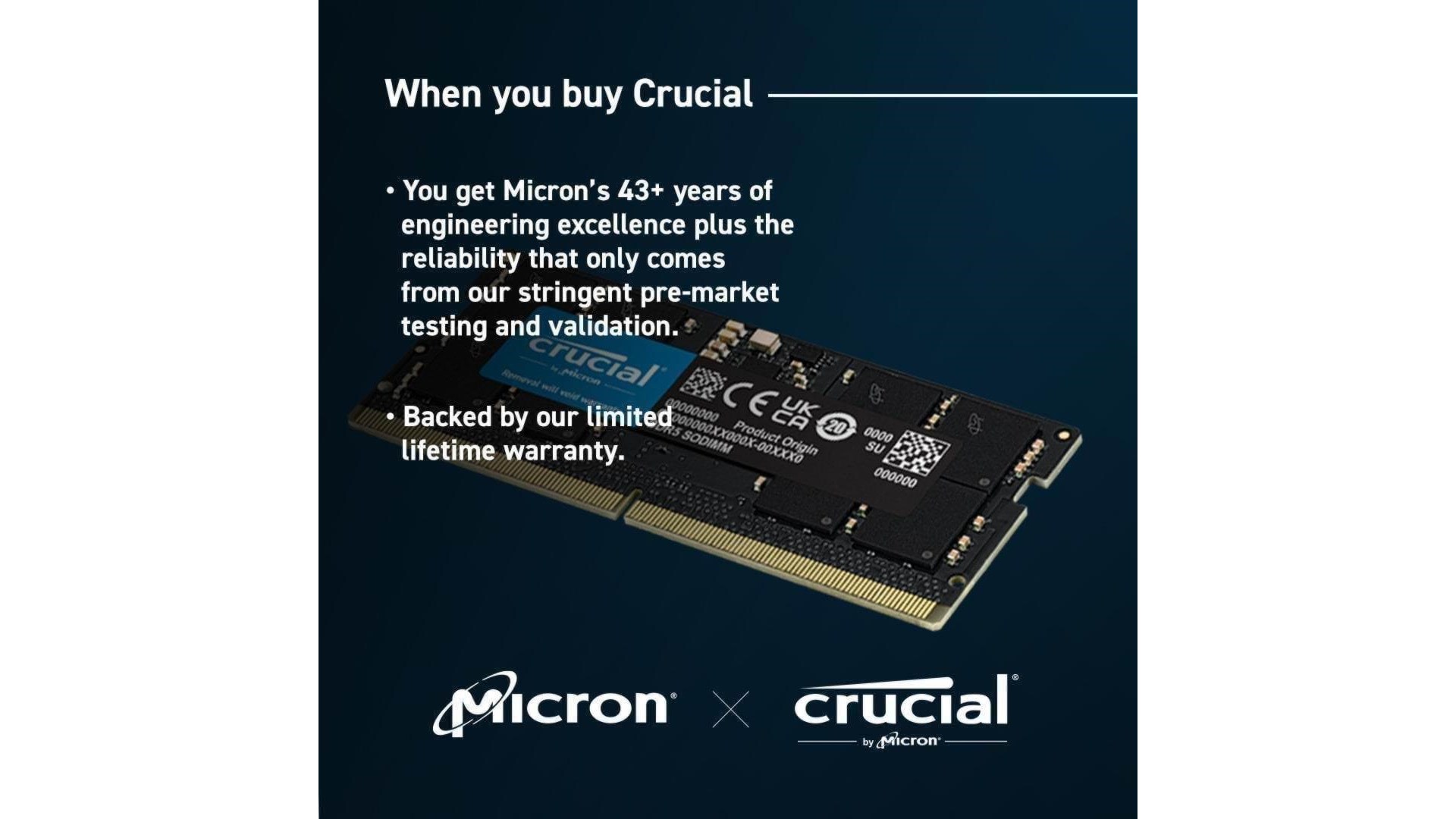 Crucial CT2K8G48C40S5 er et kraftfuldt RAM-modul, der tilbyder 16 GB hukommelse i form af to 8 GB SODIMM-moduler. Denne DDR5-4800 hukommelse er designet til at levere højtydende drift til bærbare computere, hvilket gør den ideel til brugere, der kræver hurtig og effektiv ydeevne. Uanset om du er gamer, indholdsskaber eller professionel, opfylder dette produkt dine behov for hurtigere load-tider og effektiv multitasking.
