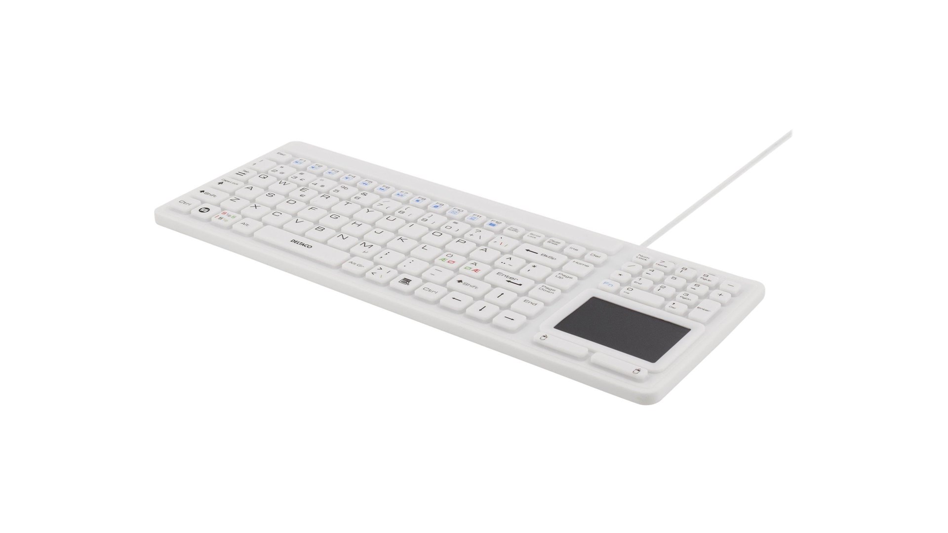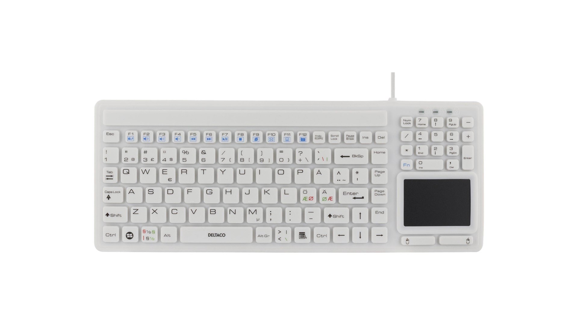 Deltaco ST-IKB888-WH er komplet med et fuldt numerisk tastatur, der giver ekstra funktionalitet til dem, der arbejder med dataindtastning eller regneark. Den tilføjede touchpad sparer plads på din arbejdsflade, da der ikke er behov for en separat mus, og det gør det perfekt til bruge sammen med bærbare computere eller som en del af et stationært setup.