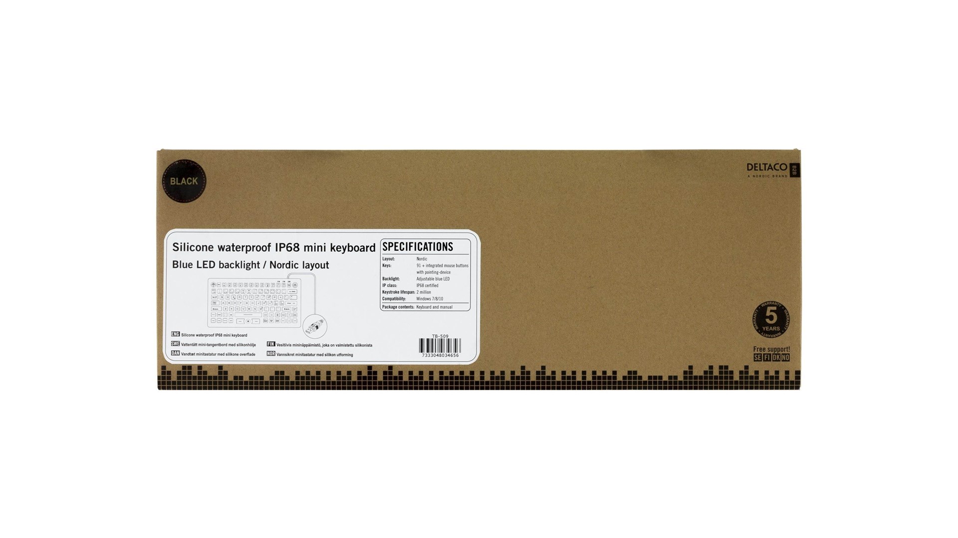 Tastaturet er designet med en nordisk layout, hvilket gør det til en ideel løsning for danske brugere, der ønsker en tastaturoplevelse, der er let at navigere. Deltaco TB-509 inkluderer også en praktisk blå LED-baggrundsbelysning. Denne funktion gør det lettere at bruge tastaturet i svagt oplyste miljøer, hvilket tilføjer en ekstra dimension af bekvemmelighed for brugere, der arbejder om natten eller i dunkle rum.