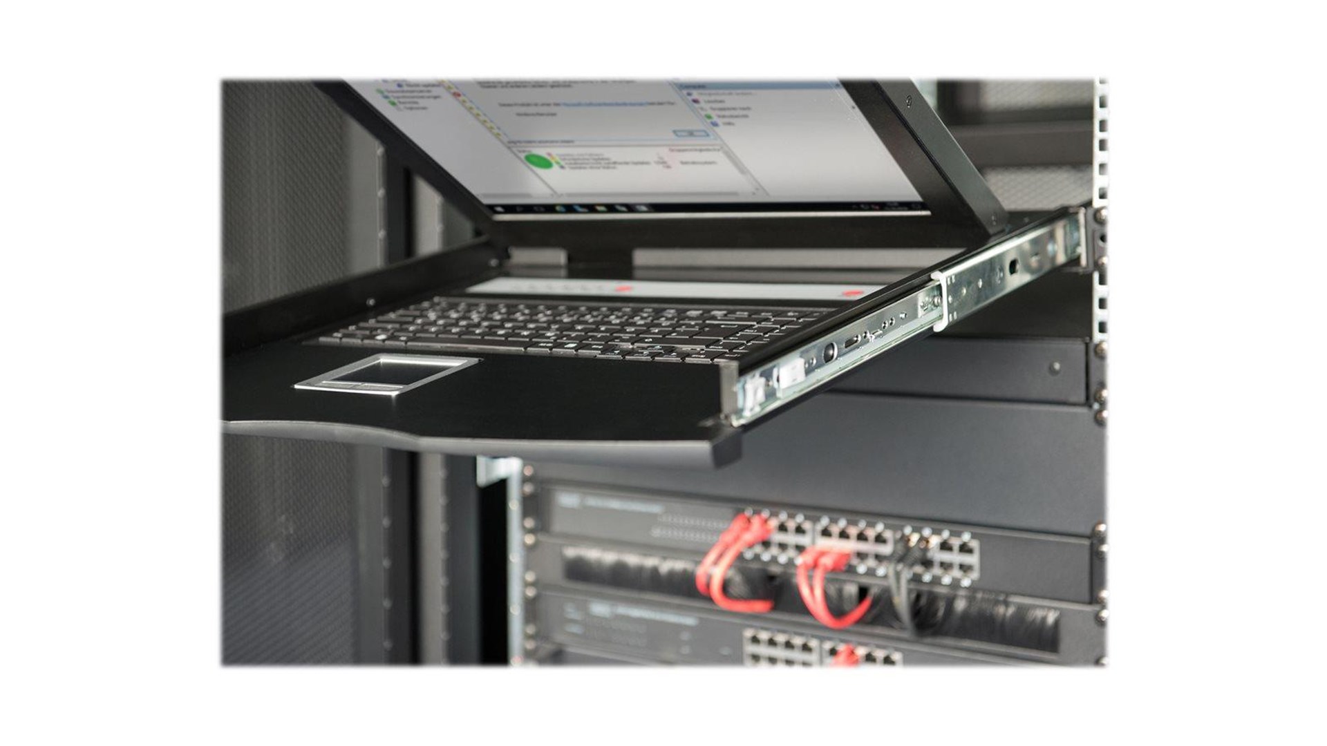 Konsollen er også udstyret med en robust touchpad og et ergonomisk tastaturlayout, hvilket giver brugeren en effektiv og komfortabel oplevelse, selv ved længere tids brug. Den indbyggede Cat 5 teknologi muliggør problemfri dataoverføring, hvilket gør det lettere for brugere at administrere komplekse IT-systemer.
