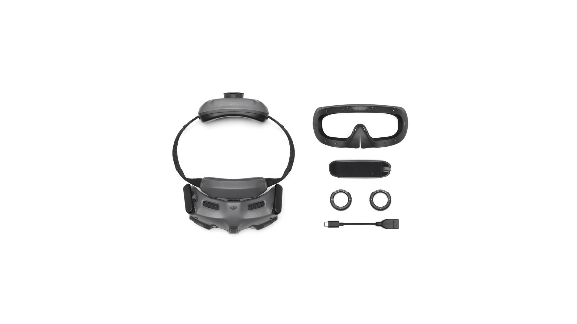 Skumpolstring, ekstra pandepude, 2 x -2.0 D korrektionslinser, USB-C OTG kabel