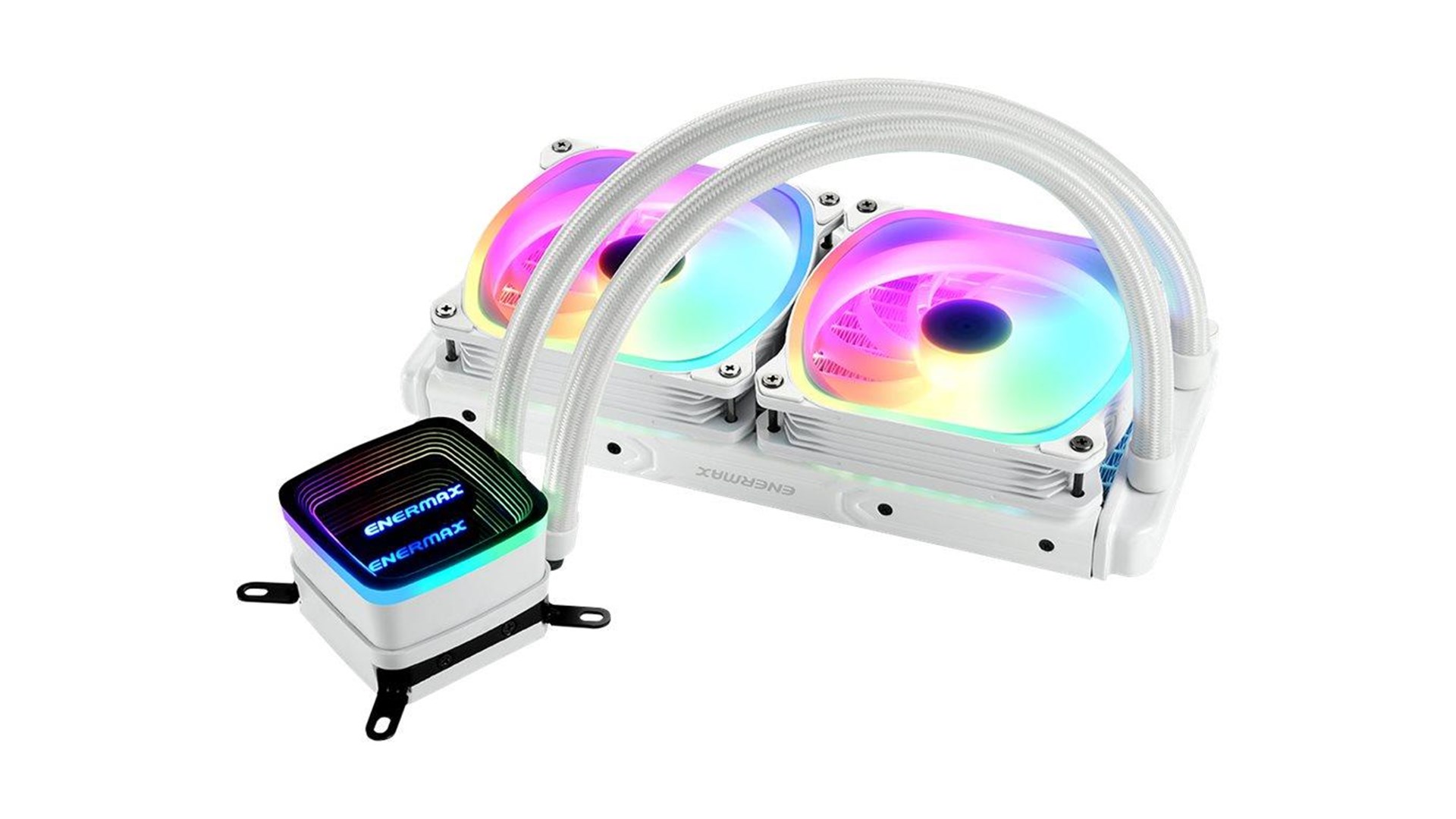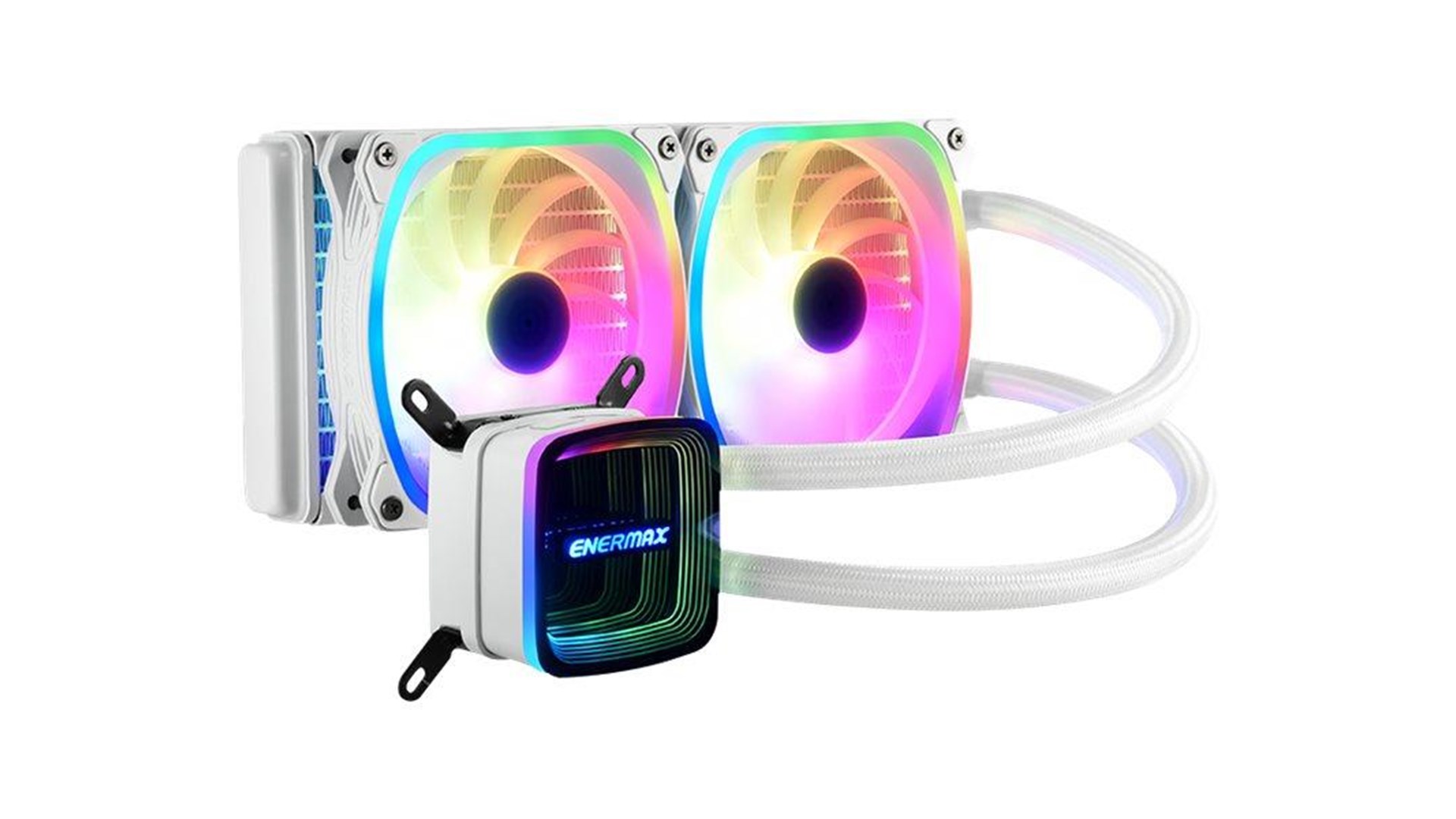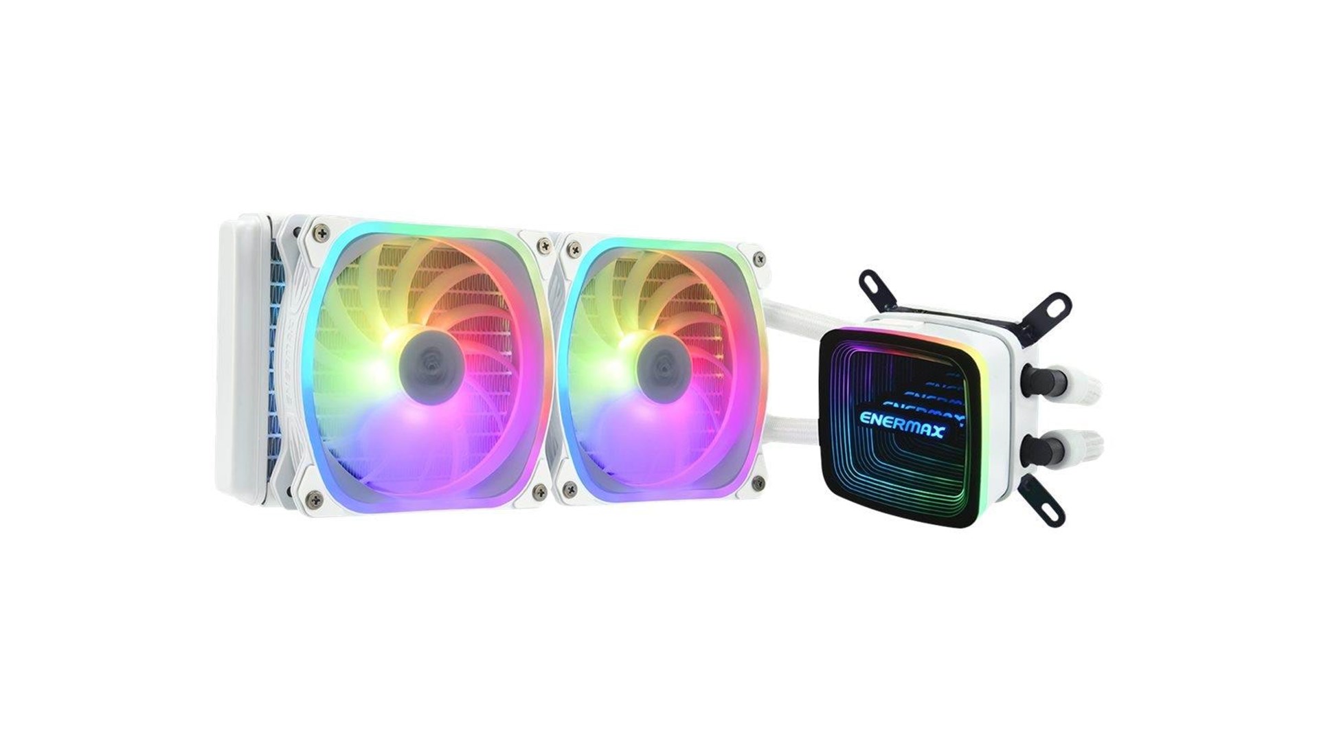 Shunt-Channel-Technology (SCT), keramisk lejepumpe, gummislanger (400 mm), Dual-Chamber Design, Central Coolant Inlet (CCI) design, ASUS Aura Sync, vortex-rammedesign, Razer Chroma RGB kompatibel, RGB Fusion 2.0 kompatibel, MSI Mystic Light Sync kompatibel, ASRock Polychrome RGB kompatibel, ENERMAX SquA ADV fans, ENERMAX RGB Control Box-kompatibel, addresserbar RGB-belysningssynkronisering, motherboardsynkronisering