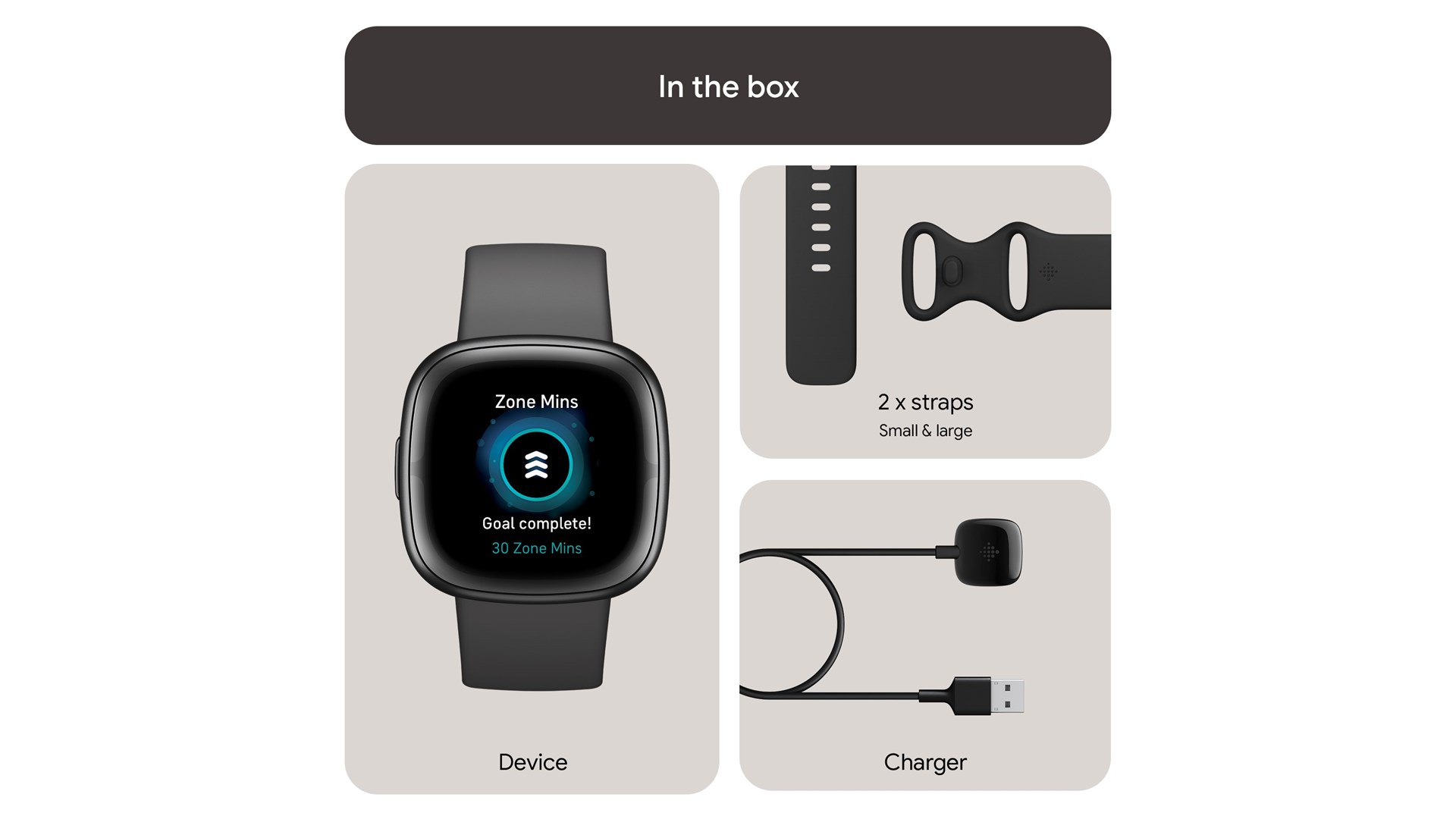 Opladningskabel, 6-måneders Fitbit Premium-medlemskab, manchet (129 - 175 mm), manchet (158 - 209 mm)