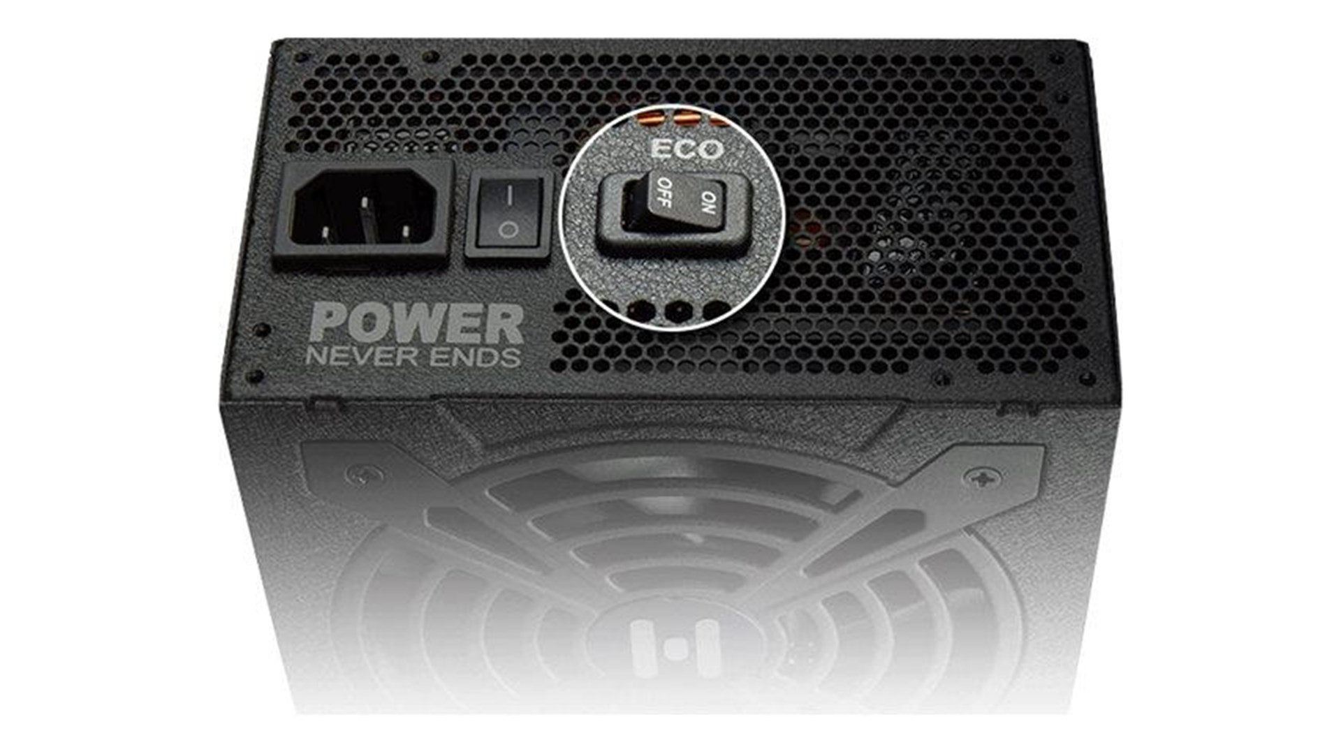 Kontakt for tænd/sluk, ECO-kontakt, beskyttelse mod overophedning, beskyttelse mod overstrøm, overspændingsbeskyttelse, overbelastningsbeskyttelse, kortslutnings beskyttelse, enkelt 12V skinne, Eco-Mode, blæserhastighedsstyring, køleblæser til flydende dynamisk leje, fuld modulær, Off-Wet Technology