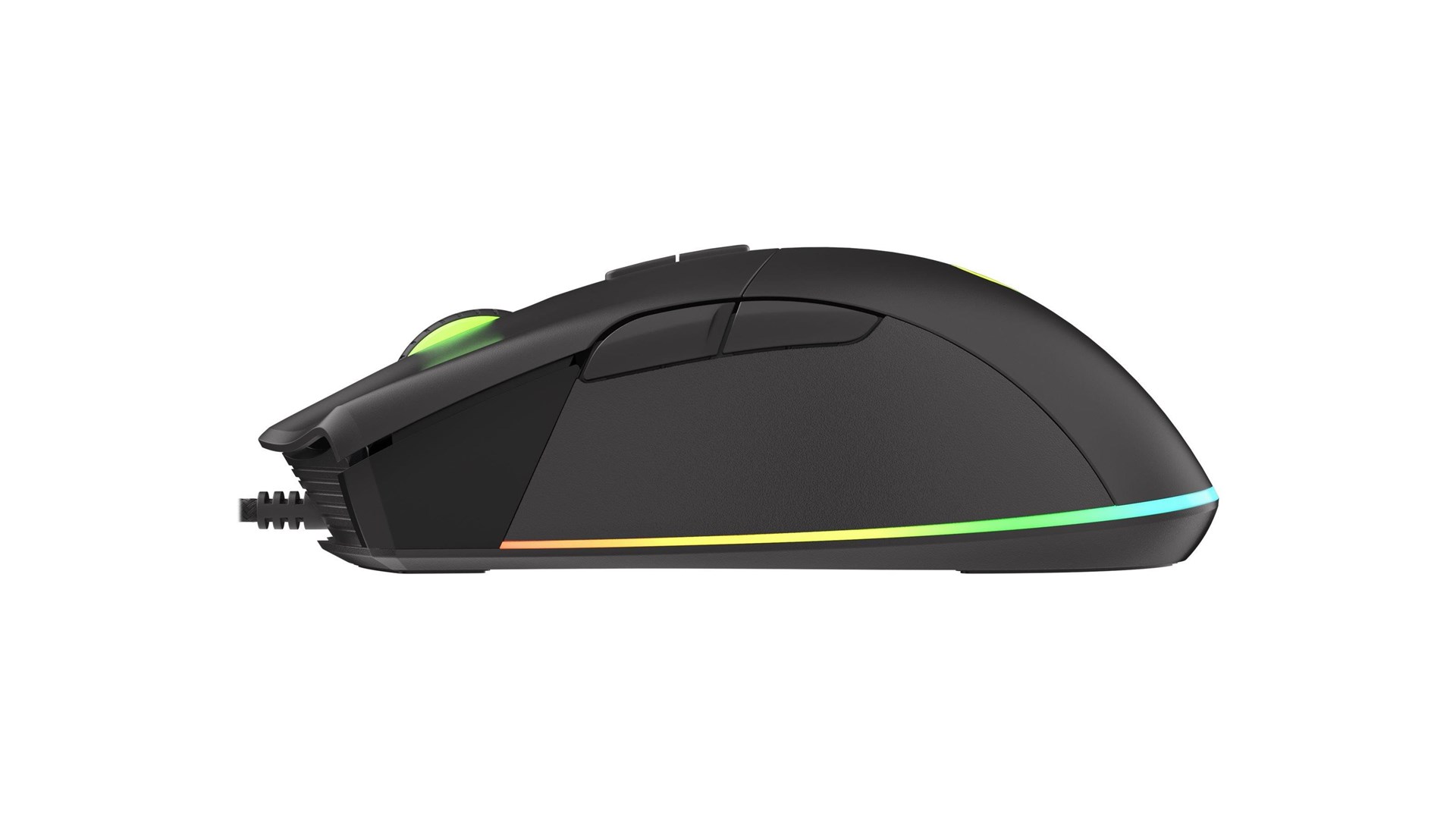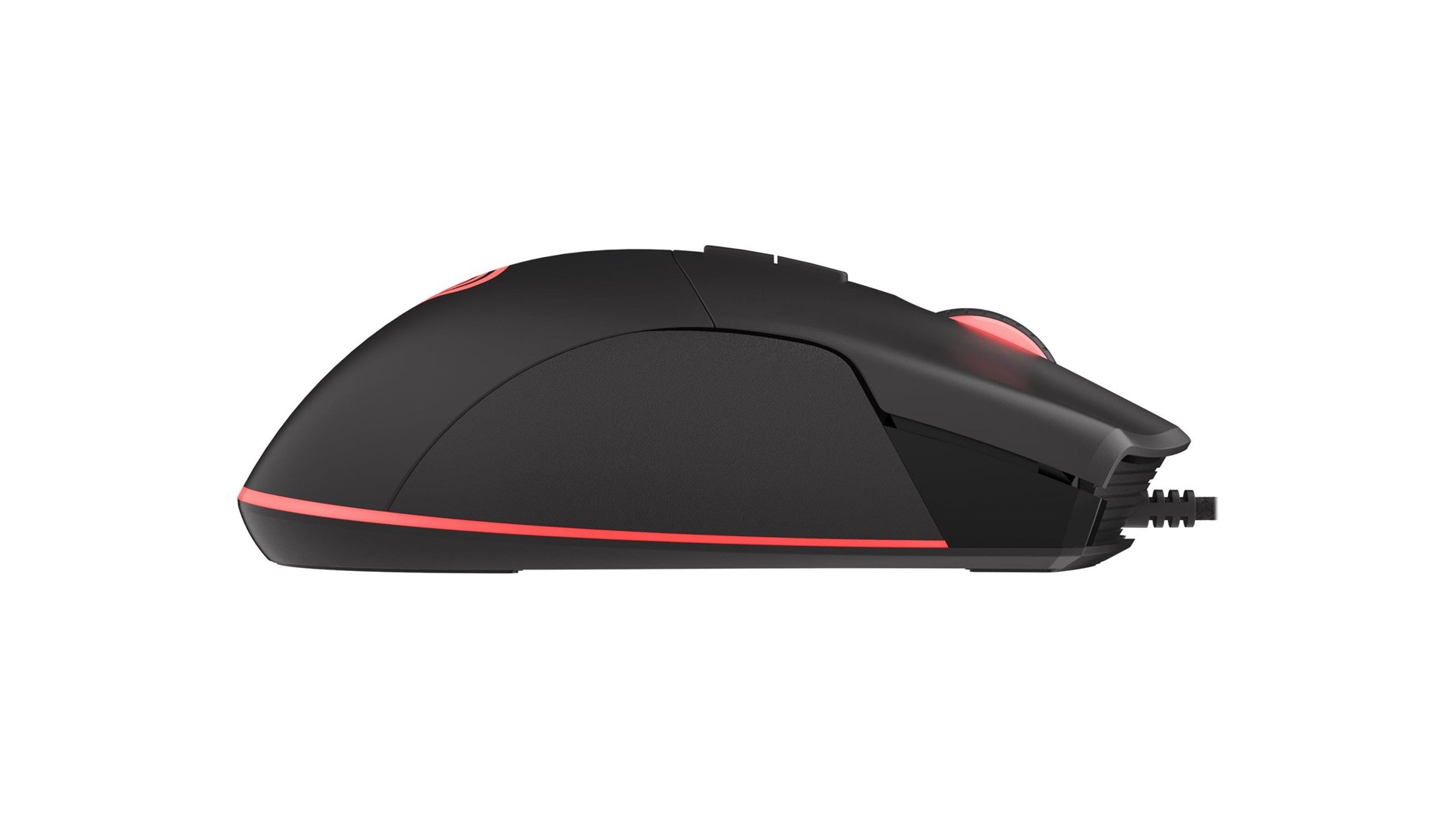 Hukommelsesprofil ombord, programmerbare knapper, teflon-glidere, RGB bagbelysning med PRISMO-effekt, flettet kabel