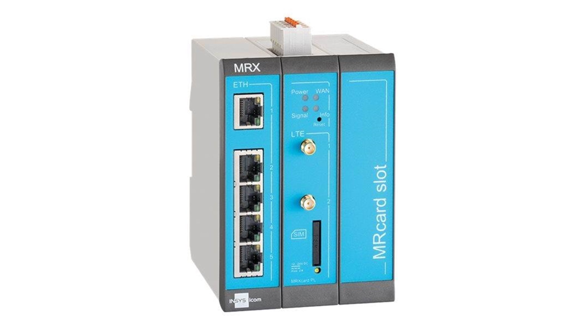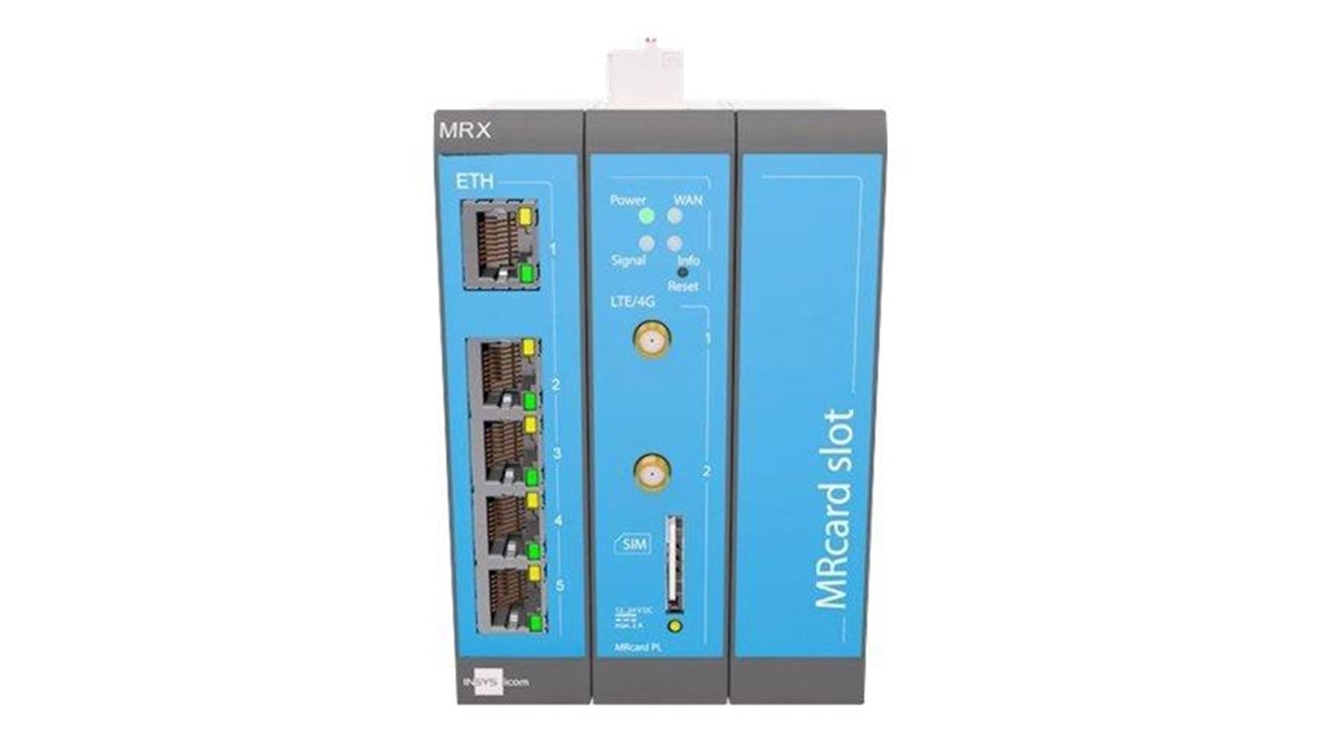 Insys MRX3 LTE-routeren er udstyret med fem Ethernet-porte og to digitale indgange, hvilket muliggør en hurtig og fleksibel netværksopsætning. Dens modulære design giver mulighed for tilpasning af applikationen, hvor man kan tilføje MRcard-udvidelseskort for at imødekomme specifikke behov, hvilket er en stor fordel i industrielle miljøer.