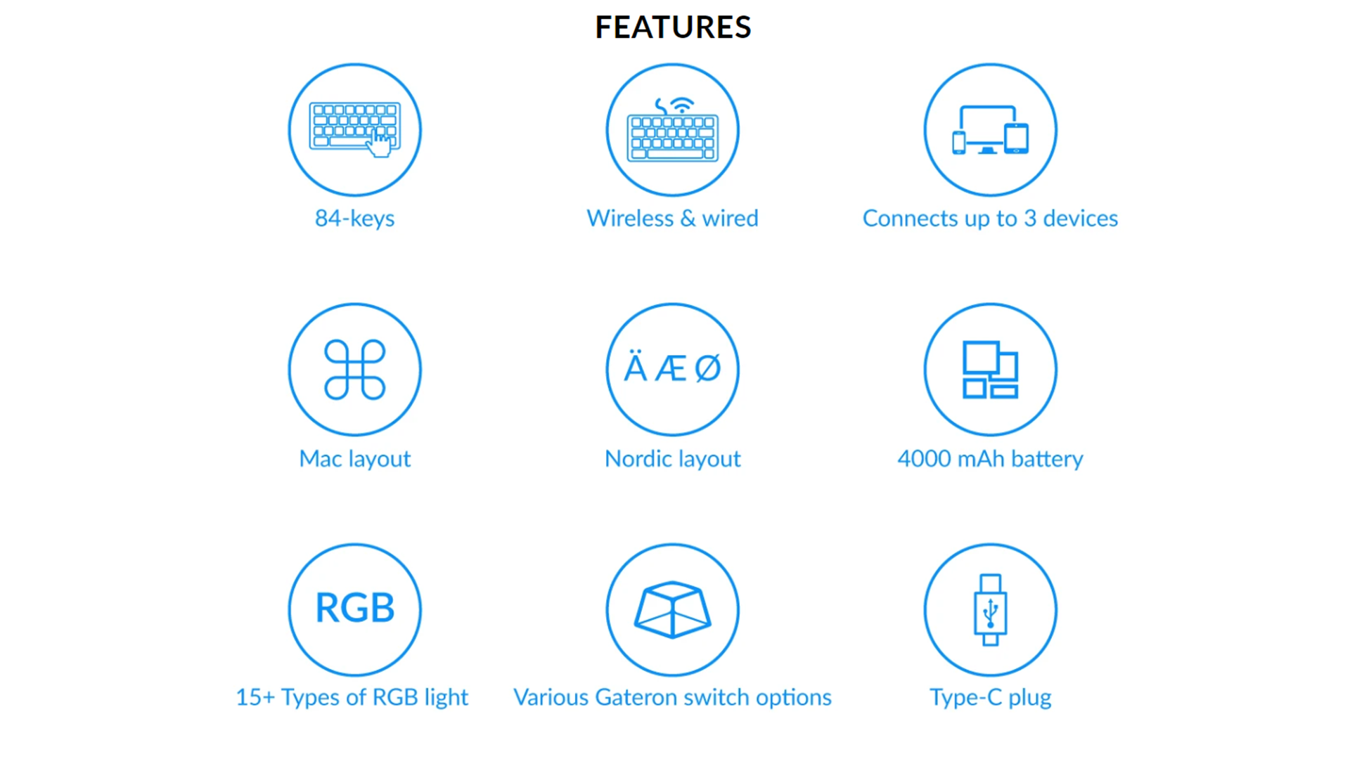 Tastaturets design er tenkeyless, hvilket betyder, at det ikke inkluderer det numeriske tastatur, derfor sparer det plads på skrivebordet. Det er udstyret med Gateron G Pro-switches, som giver en responsiv og behagelig skriveroplevelse med en tilfredsstillende kliklyd, hvilket forbedrer den samlede skrivekomfort. Overfladen er dækket med dobbeltindsprøjtede ABS-tastaturkapsler, der sikrer holdbarhed og langvarig brug uden at miste farve eller slid.