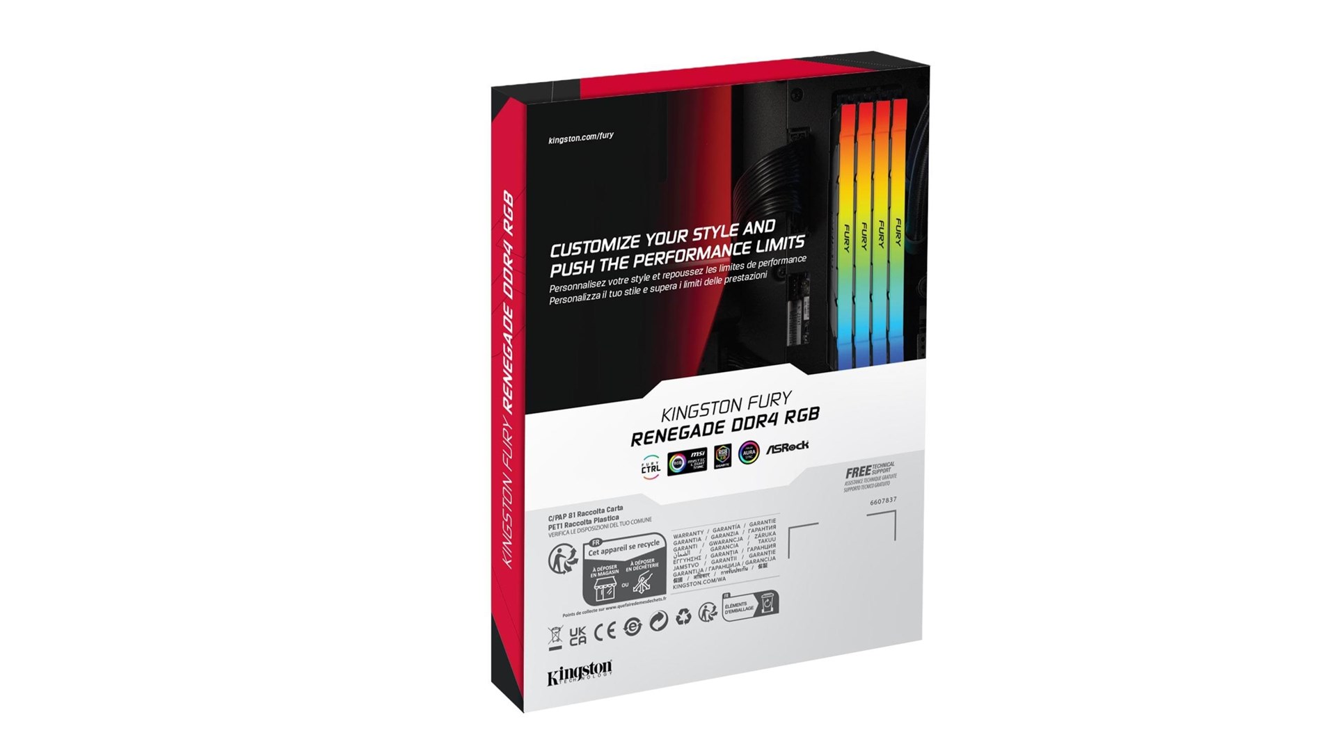 On-Die Termination (ODT), seksten rækker, Intel Extreme Memory Profiles (XMP 2.0), Black PCB, aluminium varme spreder, varmeafleder, Kingston FURY Infrared Sync Technology, AMD Ryzen Ready, RGB-farvet LED-belysning, dual rank, Serial Presence Detect (SPD), ikke bufferet