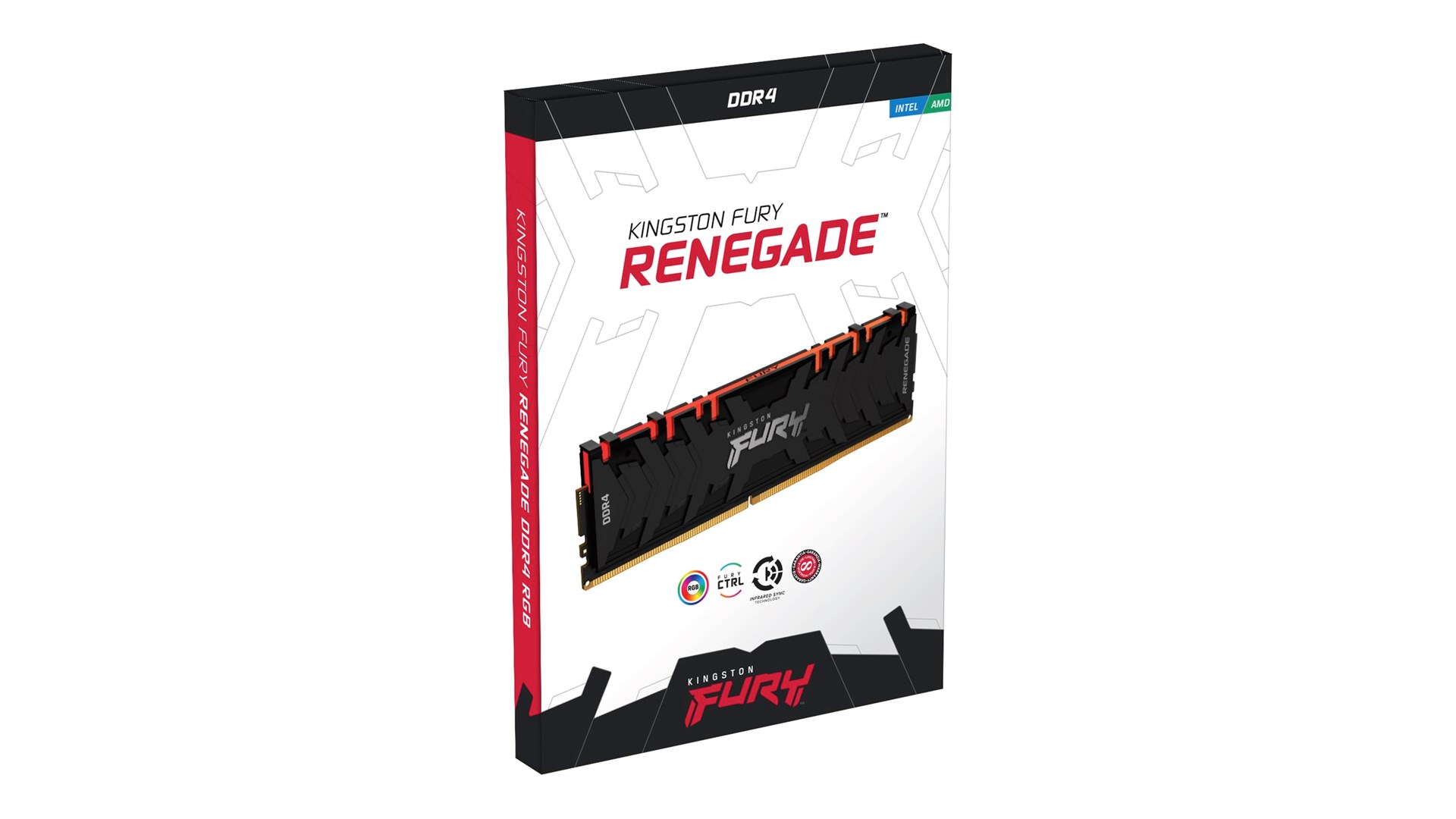 Single rank, On-Die Termination (ODT), Serial Presence Detect (SPD), Black PCB, seksten rækker, Intel Extreme Memory Profiles (XMP 2.0), RGB-farvet LED-belysning, voldsom sort aluminiumsvarmespreder, ASUS Aura Sync support, ASRock RGB LED-support, MSI Mystic Light RGB-support, Gigabyte RGB Fusion 2.0 support, Kingston FURY CTRL support, Kingston FURY Infrared Sync Technology, AMD Ryzen Ready, ikke bufferet