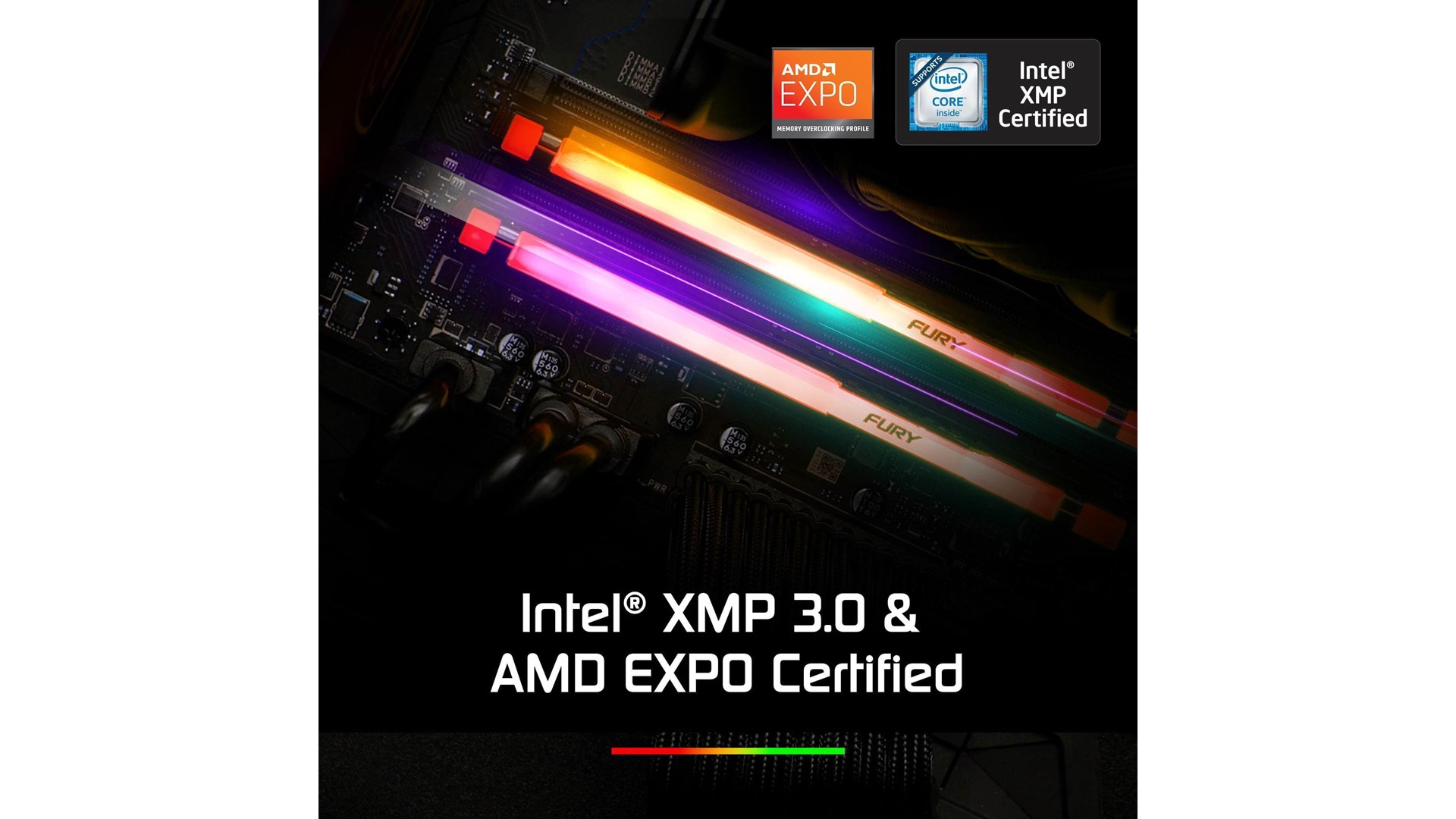 Single rank, AMD forlængede profiler til overclocking (EXPO), Intel Extreme Memory Profiles (XMP 3.0), Kingston FURY Infrared Sync Technology, Kingston FURY CTRL support, brugerdefinerbar RGB-belysning, varmeafleder, Gigabyte RGB Fusion 2.0 support, MSI Mystic Light RGB-support, ASUS Aura Sync support, Black PCB, ikke bufferet