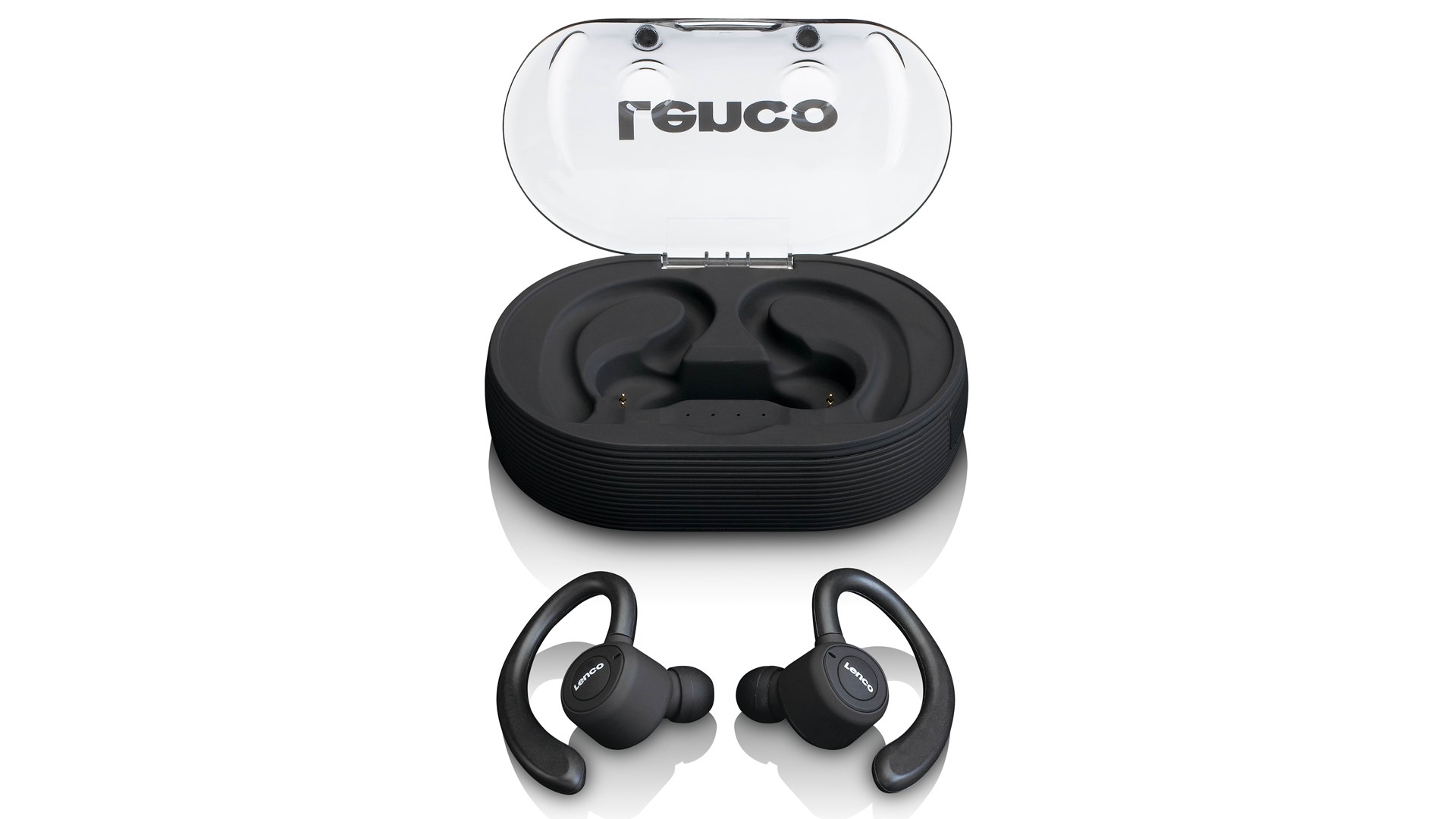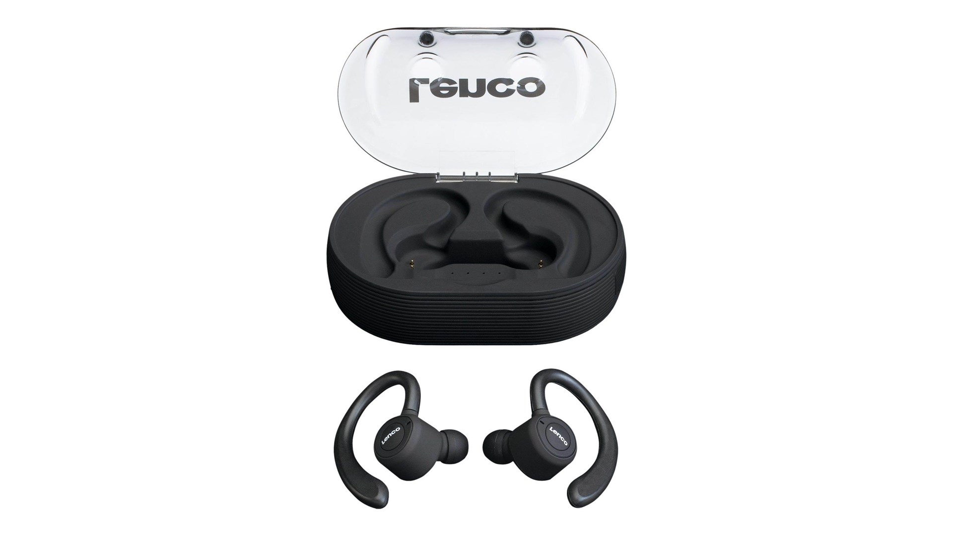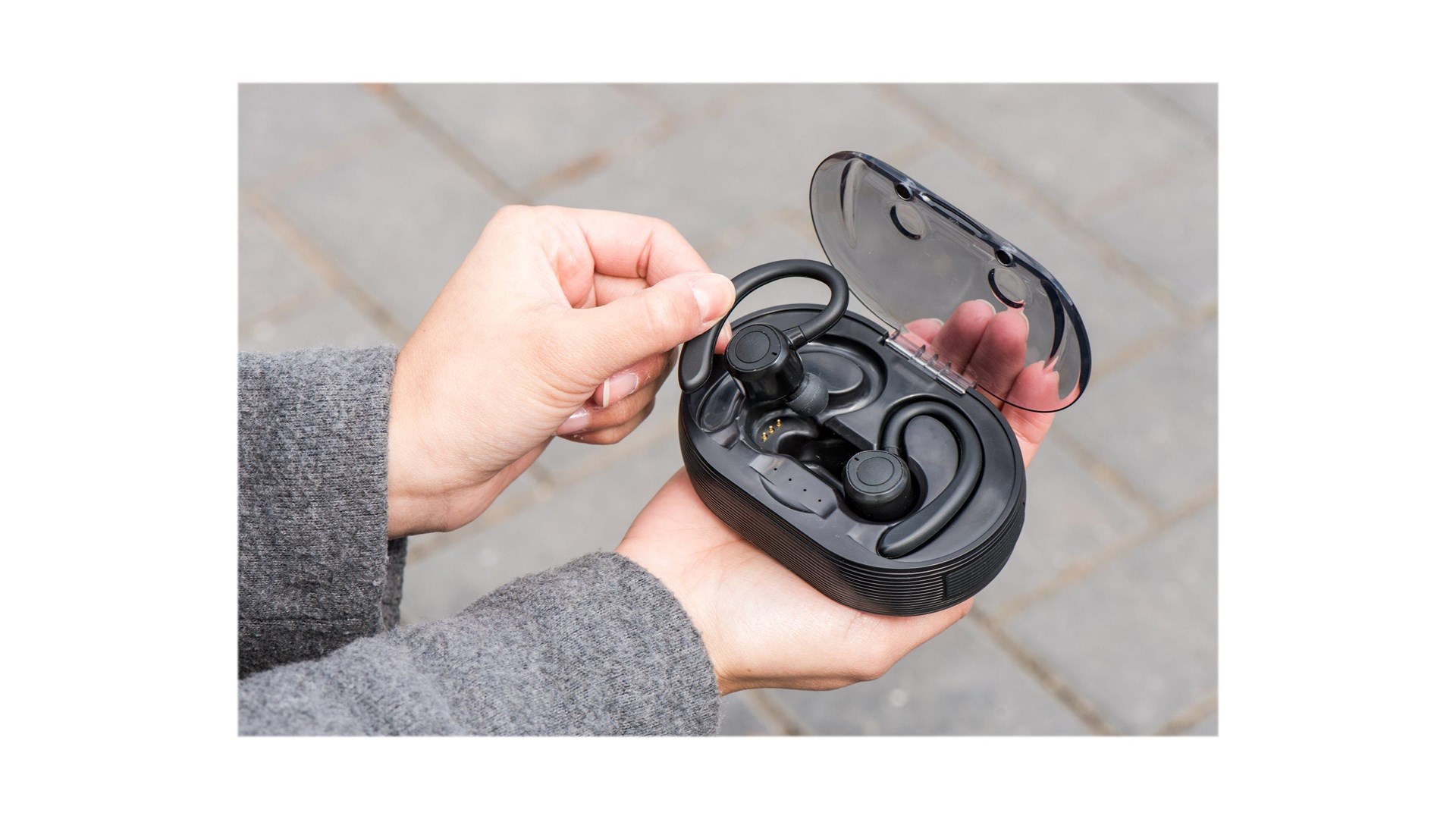 USB-opladerkabel, 3 par silikoneørespidser (small, medium, large), charging case / portable power bank (1800 mAh)