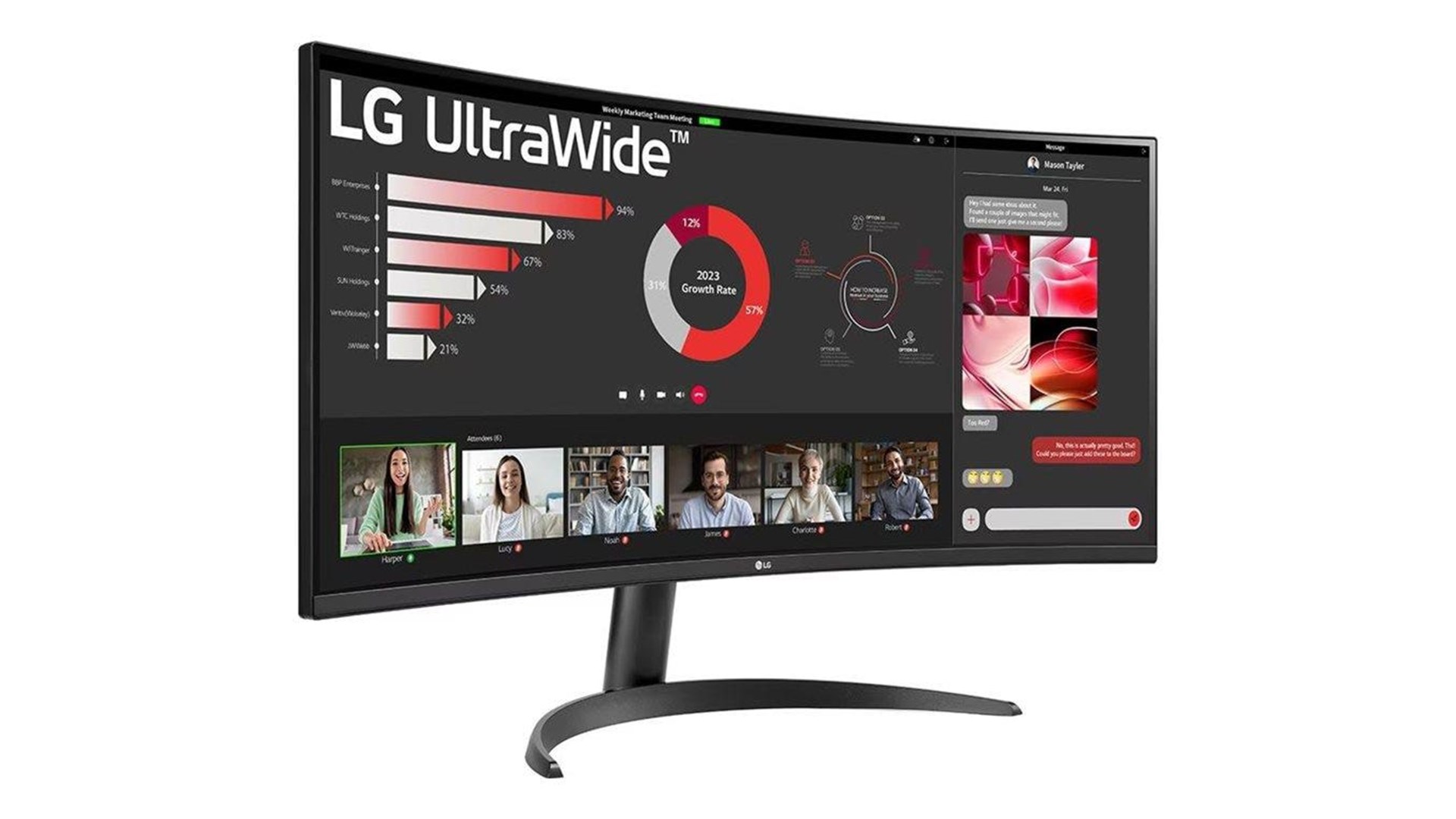 LG 34WR50QC-B er en 34" kurvet UltraWide™ QHD skærm, der tilbyder en imponerende opløsning på 3440x1440 pixels og et 21:9 format, som gør den ideel til både gaming, multitasking og professionelt brug. Med et VA panel, der understøtter op til 99% sRGB farveskalaen og HDR10, leverer skærmen fantastiske farver og dybe kontraster, hvilket forbedrer visuelle oplevelser, uanset om du ser film, spiller spil eller arbejder med grafik.
