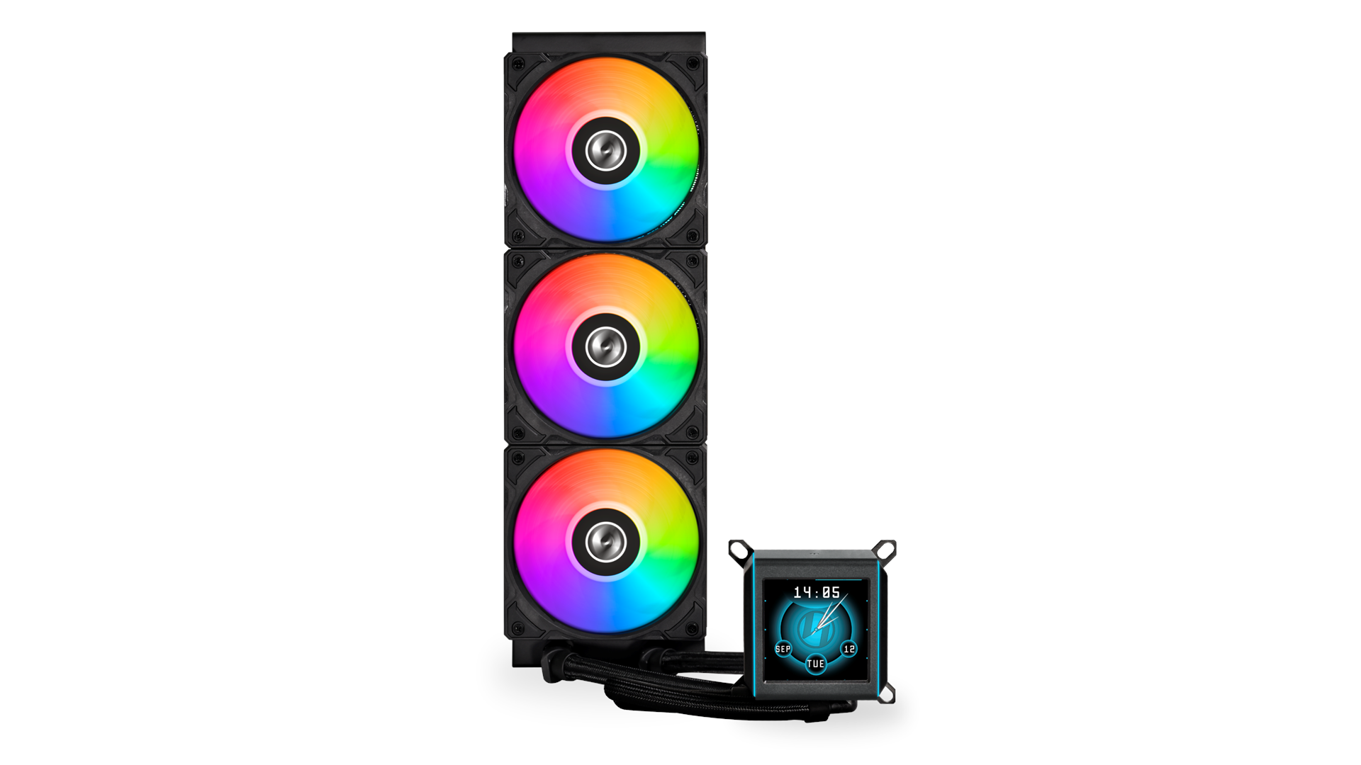 Kobber-kuldeplade, serieforbindelsesdesign, termisk fedt fortrykt, ARGB LED-oplysning, 8. generation Asetek-pumpe, L-Connect 3-kompatibel, enkeltbølgede radiatorfinner, 2, 88" IPS LCD-display