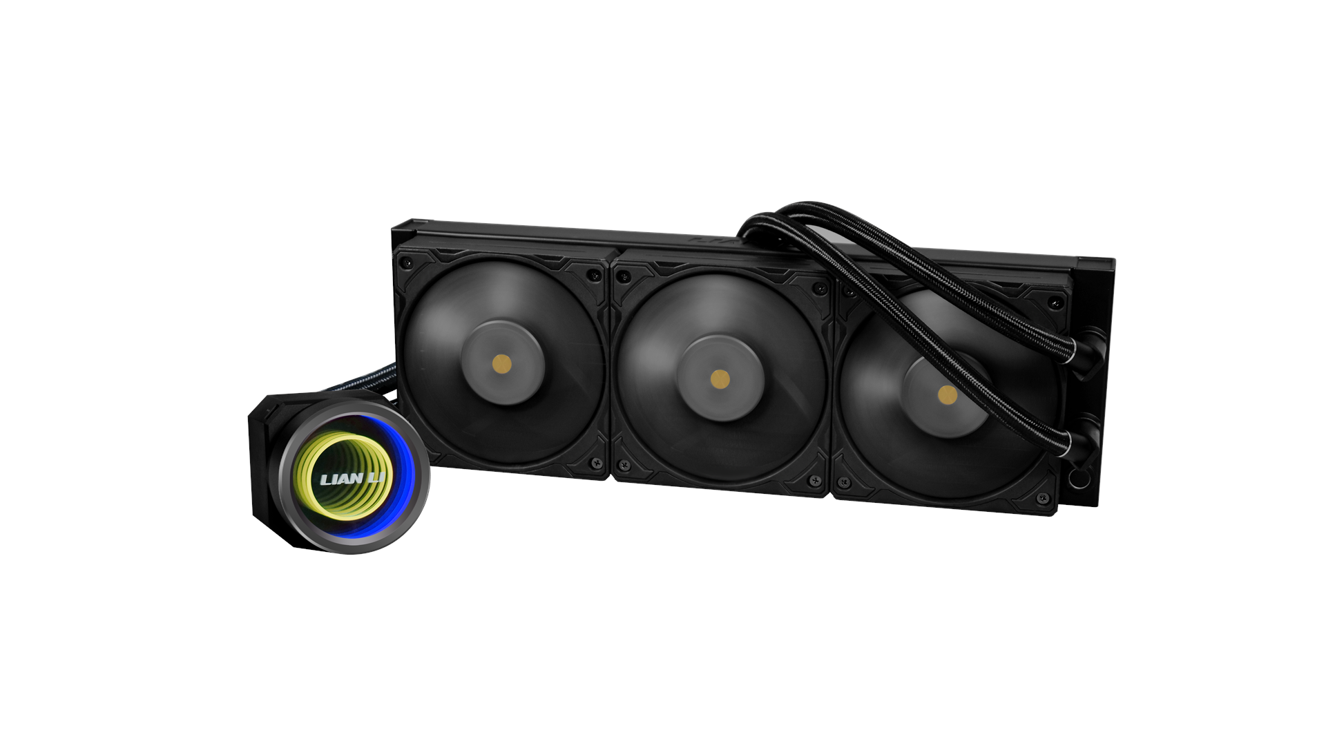 Serieforbindelsesdesign, 4000 RPM pumpeblæserhastighed, ARGB-pumpehoved, termisk fedt fortrykt, Flydende krystal polymerblæserklinger (LCP), L-Connect 3-kompatibel, dobbelt bølge-radiatorfinner