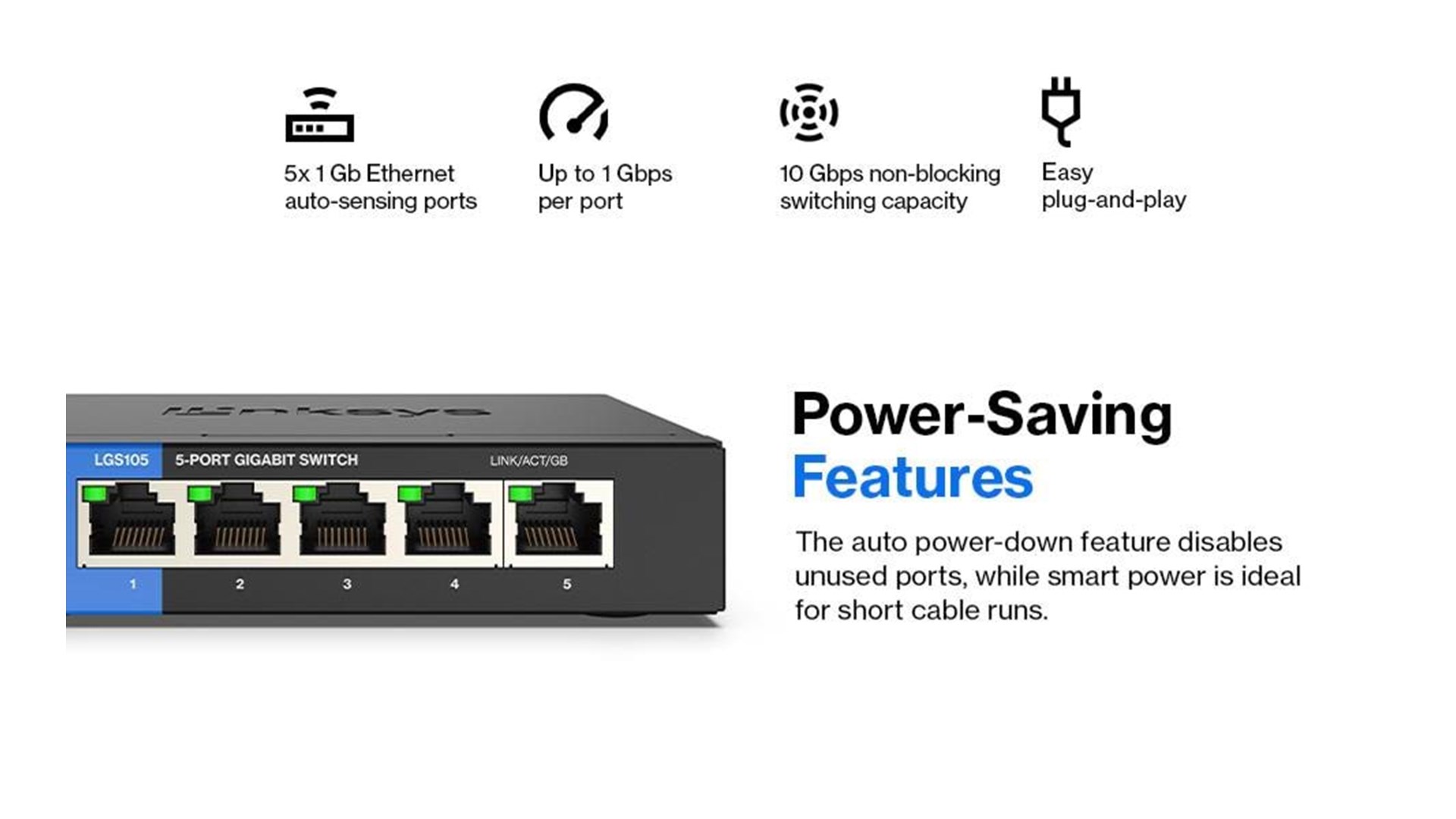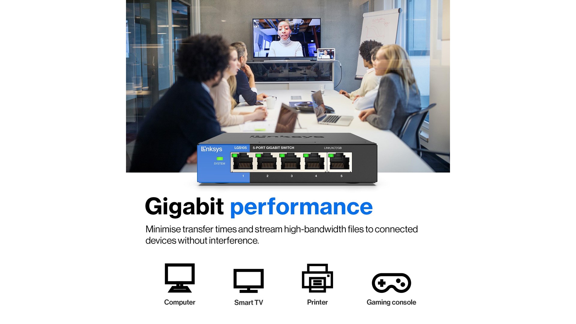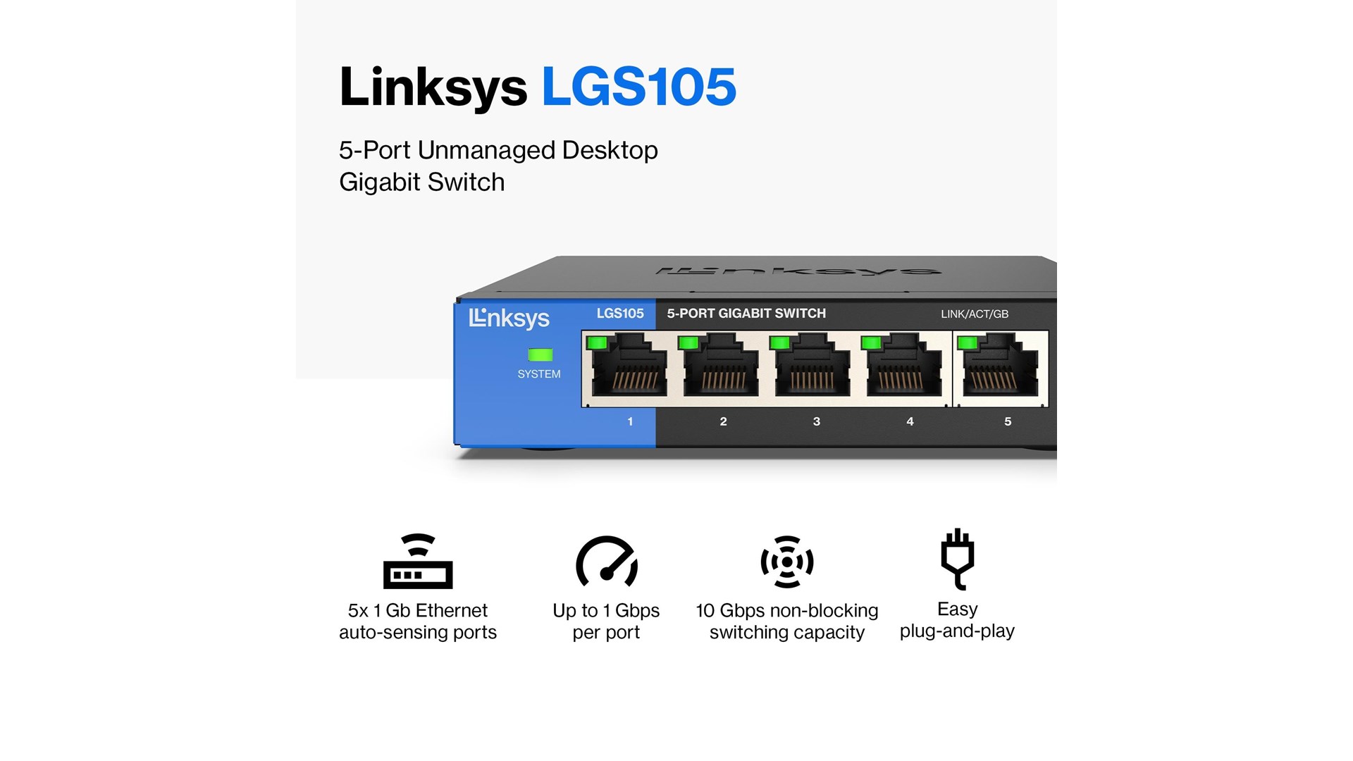 Switchens 5 porte understøtter Ethernet-forbindelser med hastigheder på op til 1000 Mbps, hvilket gør den perfekt til streaming af video, online gaming og samtidig adgang til store filer. Uanset om du har brug for at forbinde skrivebord, servere eller netværkslagringsenheder, giver Linksys LGS105-EU-RTL en solid løsning, der kan håndtere krævende netværkstrafik.
