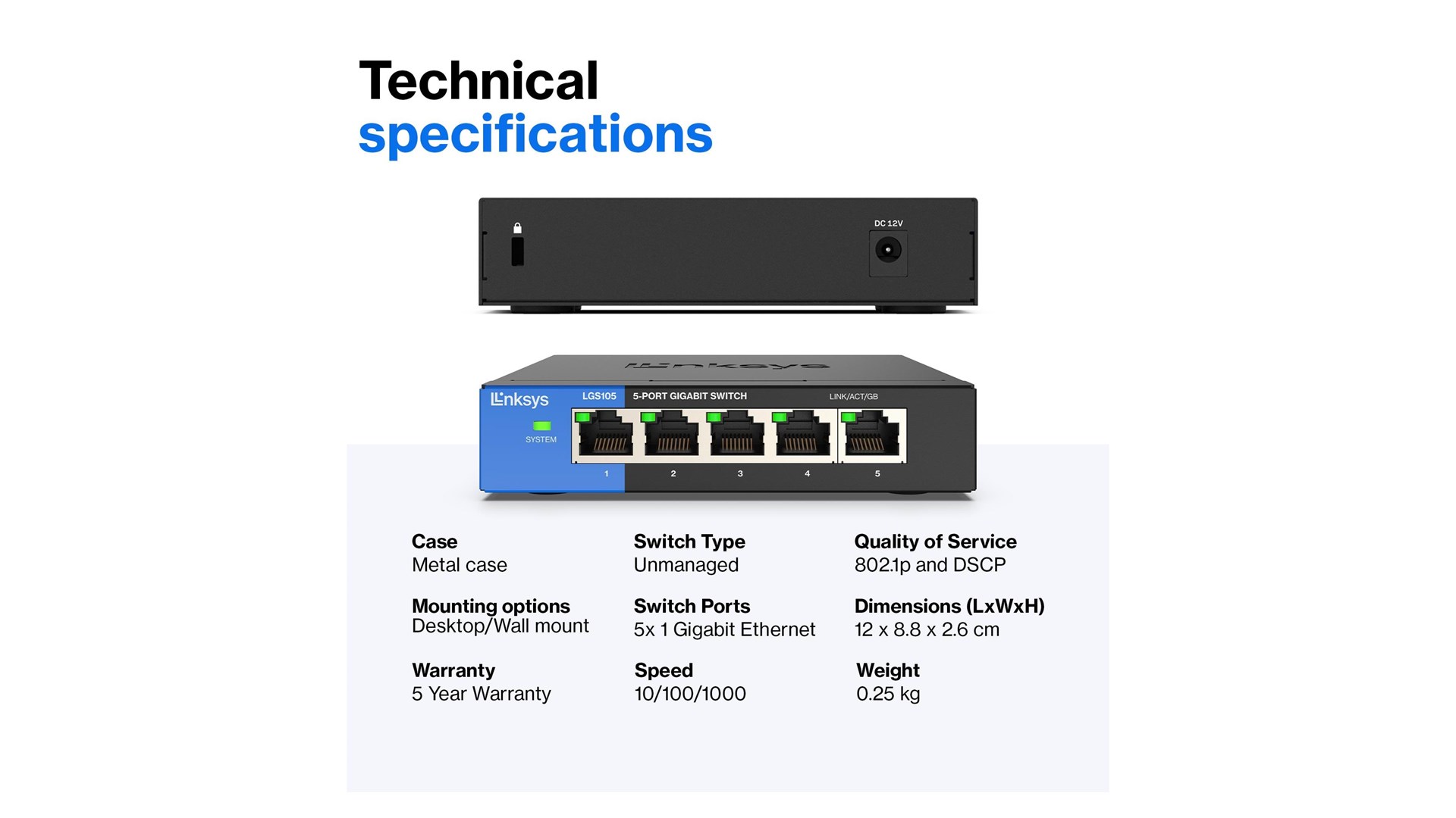 I forhold til design er LGS105-EU-RTL kompakt og stilfuld, hvilket gør den nem at integrere i ethvert kontormiljø. Den kan placeres på en flad overflade eller monteres fast på en væg, hvilket giver fleksibilitet i forhold til din arbejdsplads' layout. Dens robuste konstruktion sikrer desuden en lang levetid, hvilket gør den til et værdifuldt valg for dem, der ønsker en pålidelig netværksløsning.