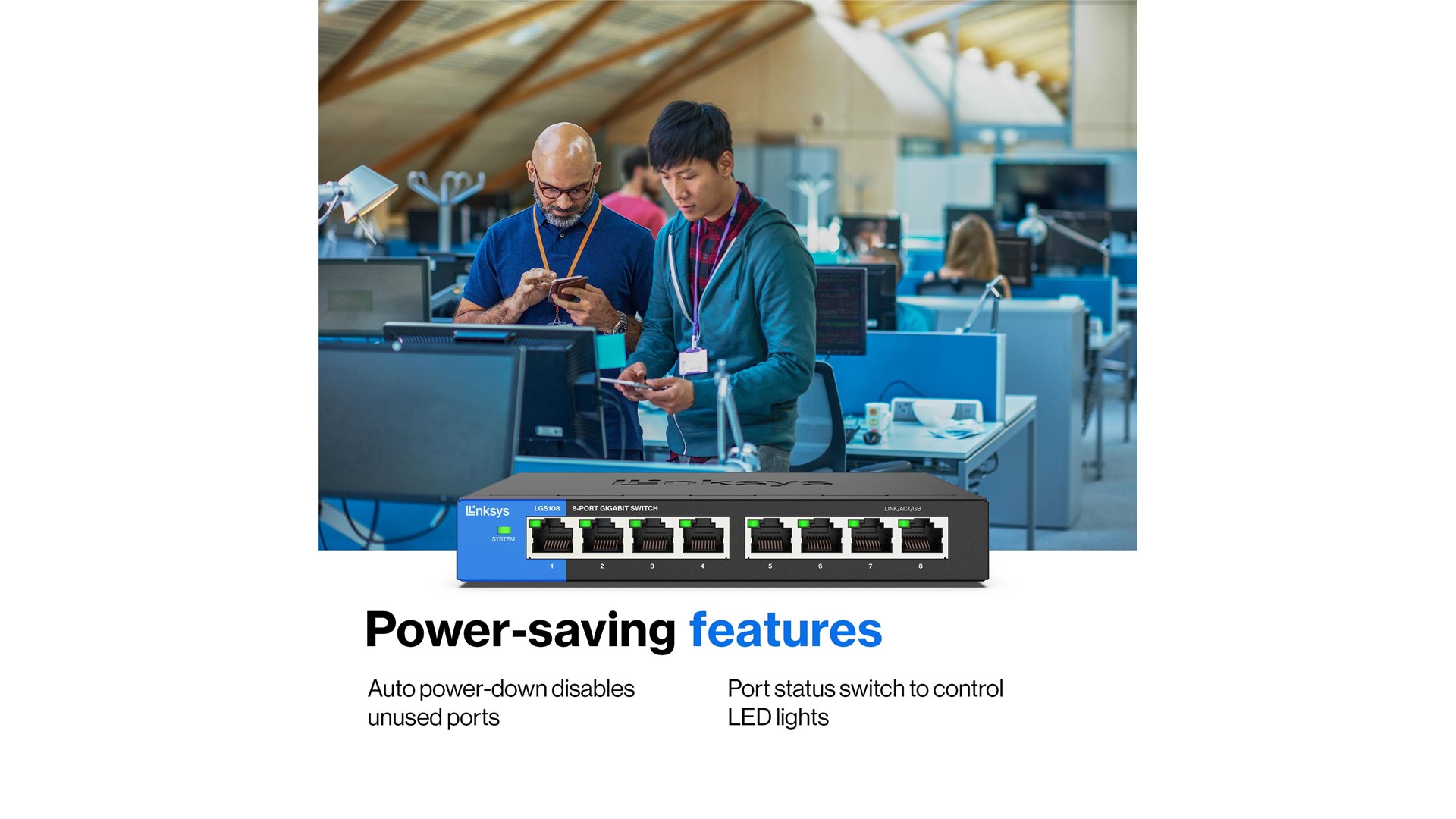 Linksys LGS108-EU understøtter også energibesparende funktioner som Energy Efficient Ethernet (EEE). Dette gør den ikke blot miljøvenlig, men hjælper også med at reducere driftsomkostningerne, hvilket er en vigtig overvejelse for både privat- og erhvervslivet.