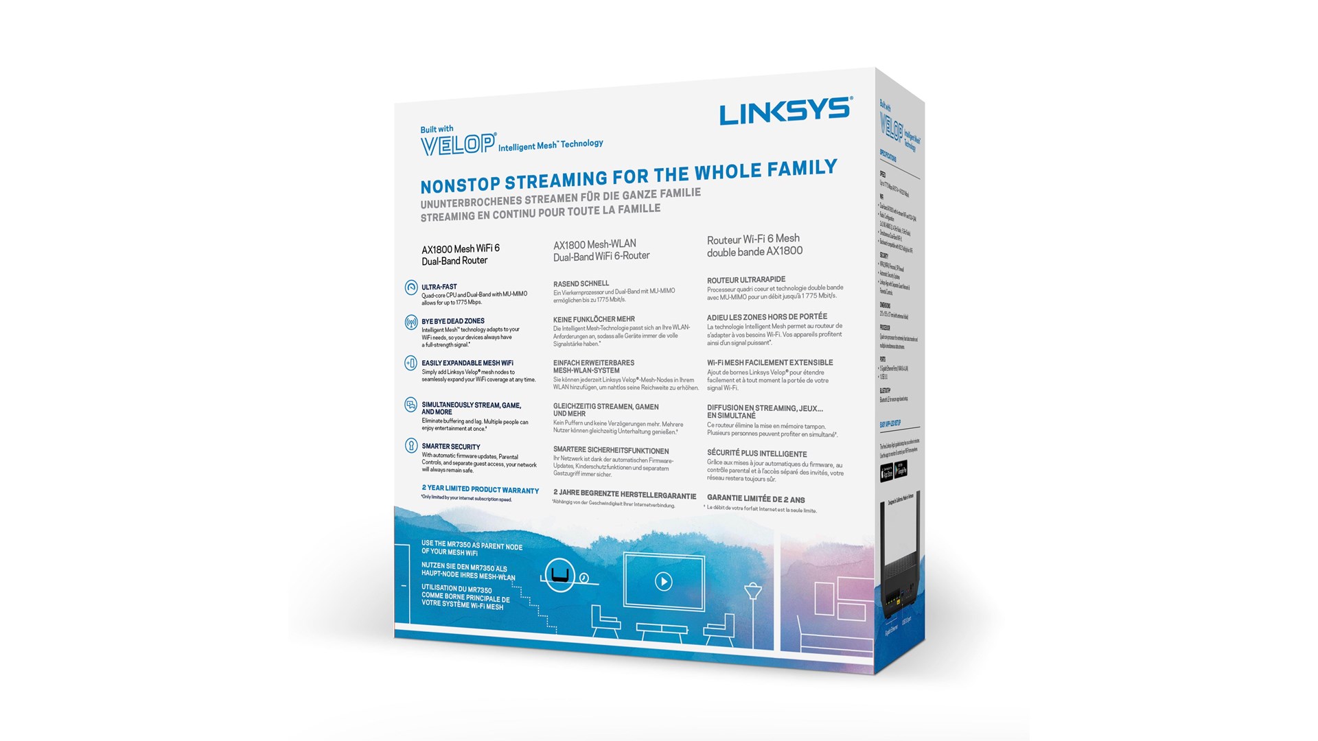 Forældrekontrol, Tilgangspunkt, drift, MU-MIMO teknologi, dobbeltbånd, routertilstand, gæsteadgang, krypteringskapabel, Intelligent Mesh-teknologi