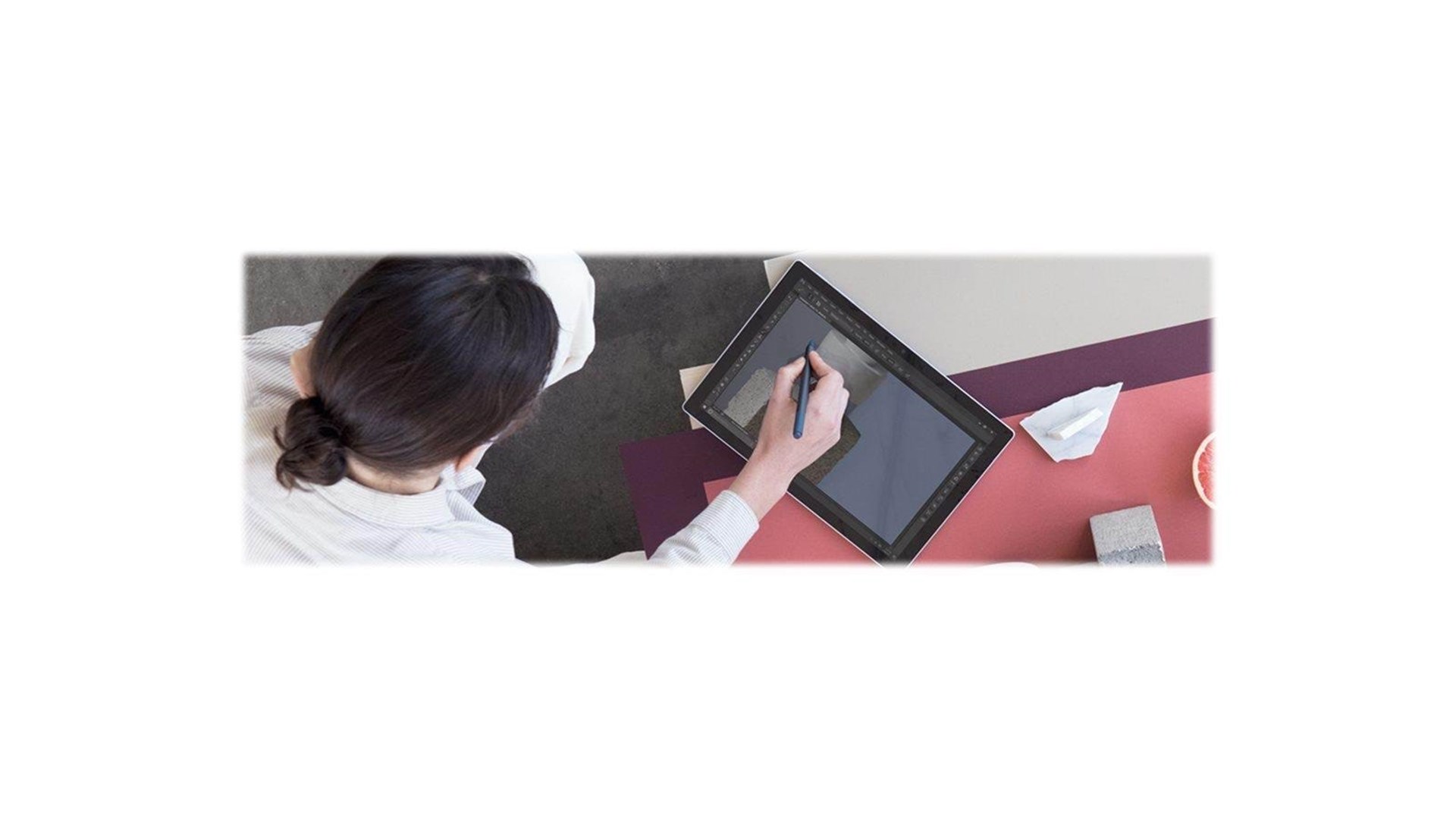 Skrivestiften har en ergonomisk formidling, der gør den behagelig at holde i længere tid og giver mulighed for afbalanceret kontrol. Penne tilbyder 4096 trykniveauer, hvilket gør det muligt at kontrollere stregtykkelse og intensitet, afhængigt af hvor hårdt man trykker ned. Den har også en spids for præcise detaljer og en gummieret visker i den modsatte ende, der nemt kan slette fejltagelser og foretage justeringer.