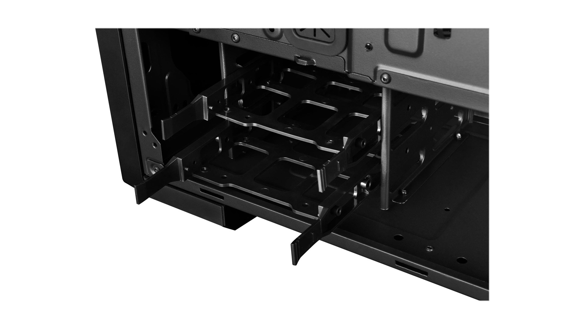 | Udvidelses-båse | 1 (total) / 1 (fri) x frontadgang - 5.25" 2 (total) / 2 (fri) x intern - 3.5" 3 (total) / 3 (fri) x intern - 2.5" |