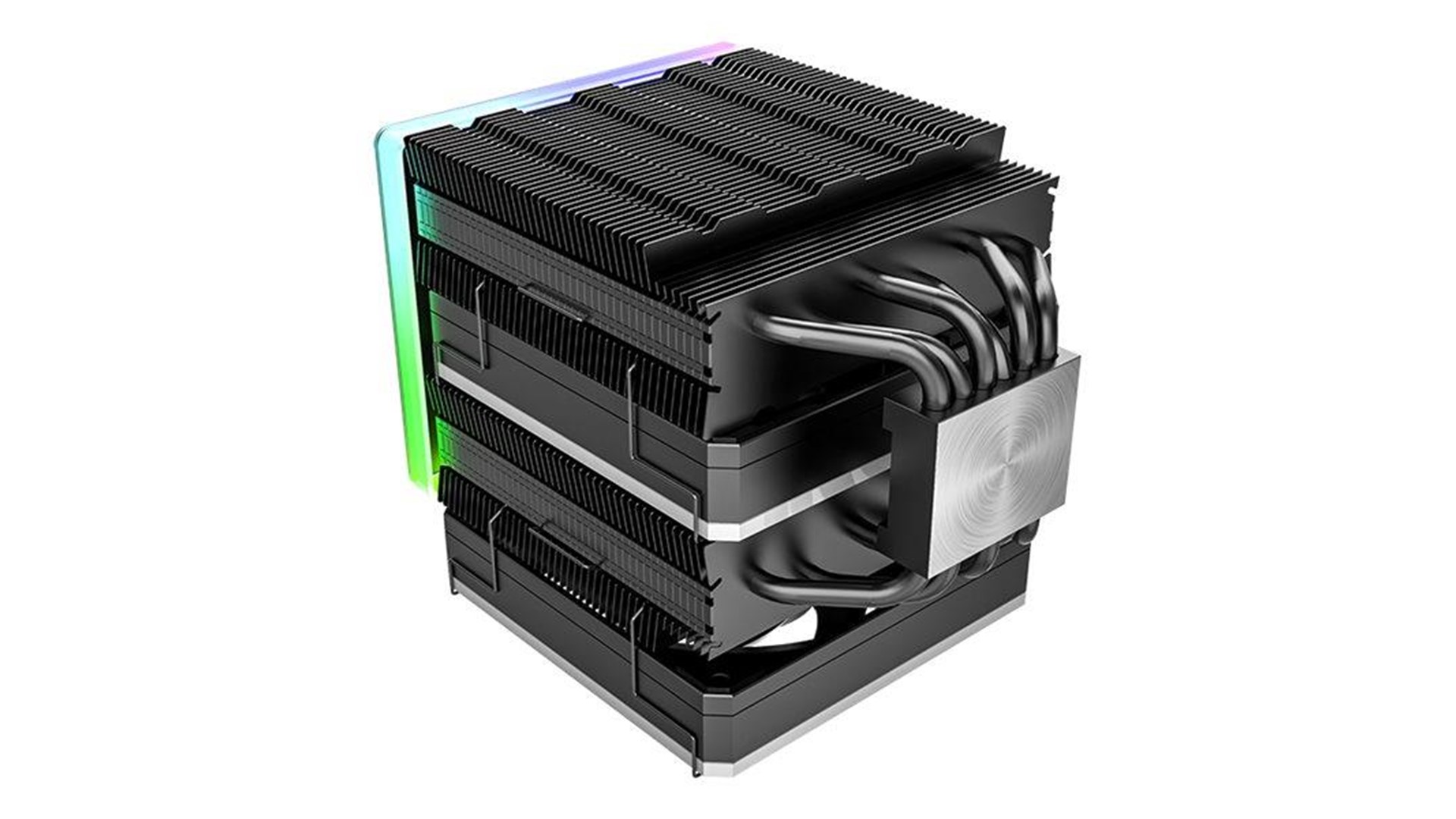 6 kobbervarmerør (6 mm), Dual-Tower design, 6-pæl blæsermotor, ARGB topdække