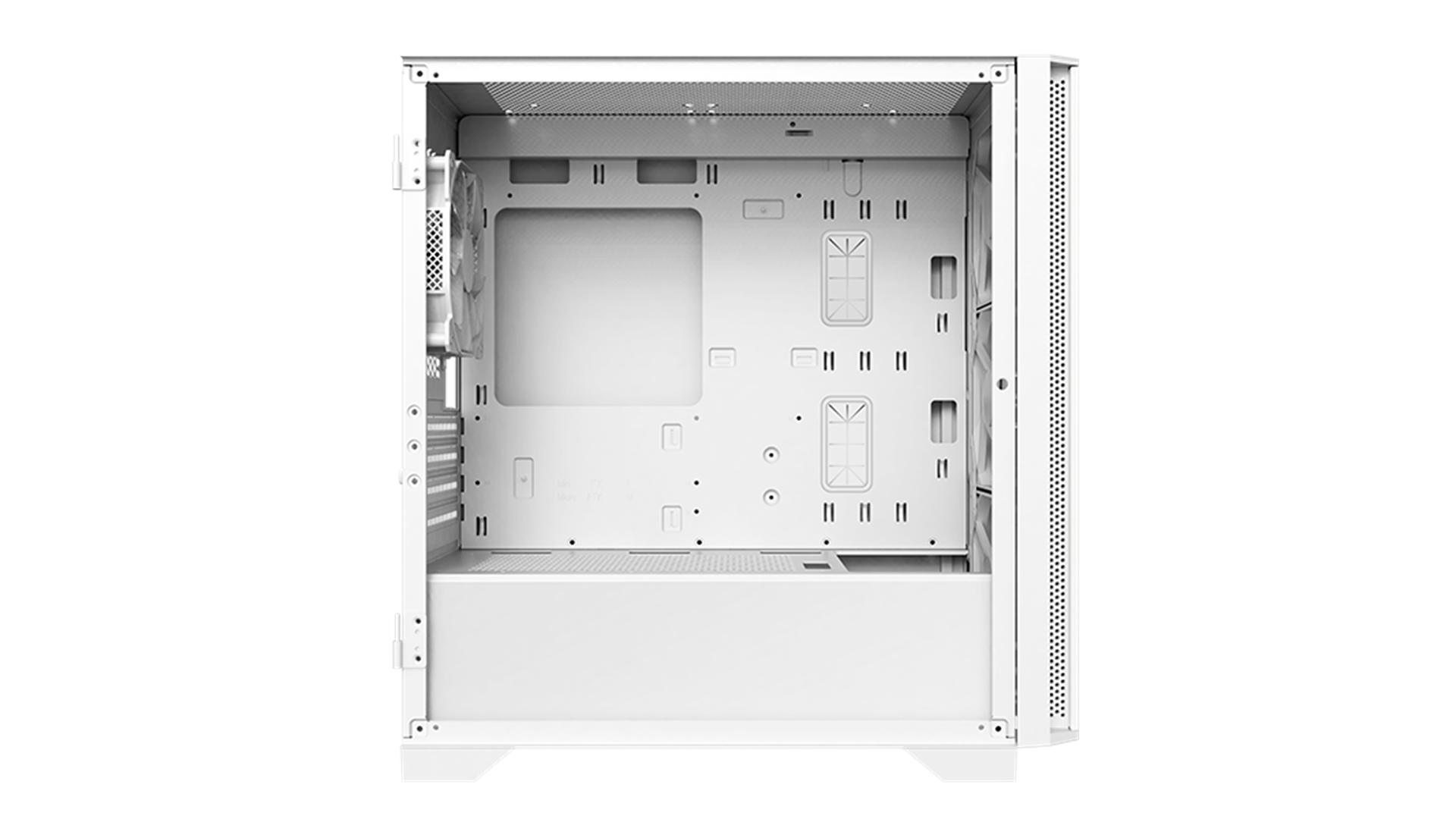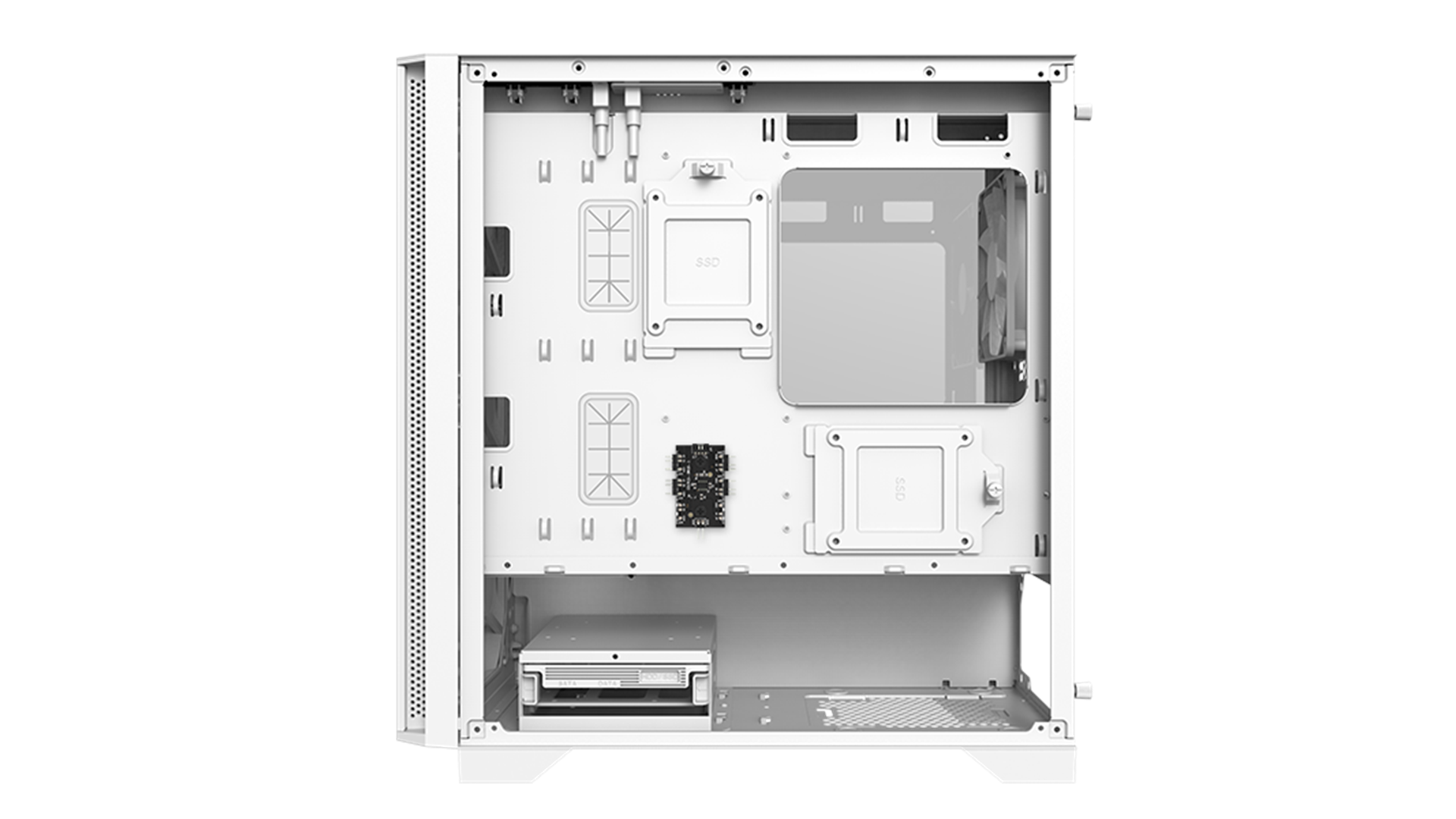 PSU-støvfiltre, støvfilter i bunden, top panel støvfilter, understøtter op til 280 mm radiator i frontpanel, understøtter op til 120 mm radiator i bagpanel, understøtter op til 240 mm radiator i toppanel, ARGB-blæsere