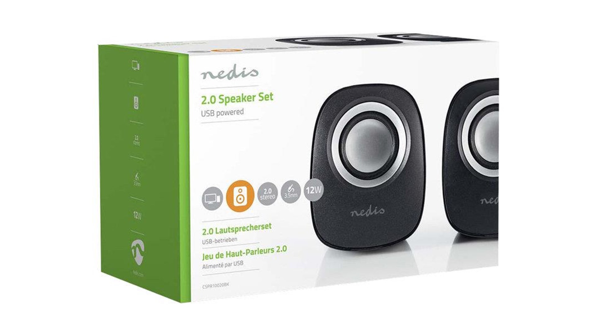 Nedis CSPR10020BK er et kompakt højttalersystem designet specifikt til brug med pc'er, bærbare computere og tablets. Med sin 2.0-kanal konfiguration og 12 watt udgangseffekt leverer højttalerne en klar og livlig lydoplevelse, der opfylder kravene fra både musikelskere og gamere. Det intuitive plug-and-play design gør installationen hurtig og enkel; du skal blot tilslutte USB-kablet til en strømkilde og 3,5 mm stik til lydkilden for straks at nyde højkvalitets lyd.