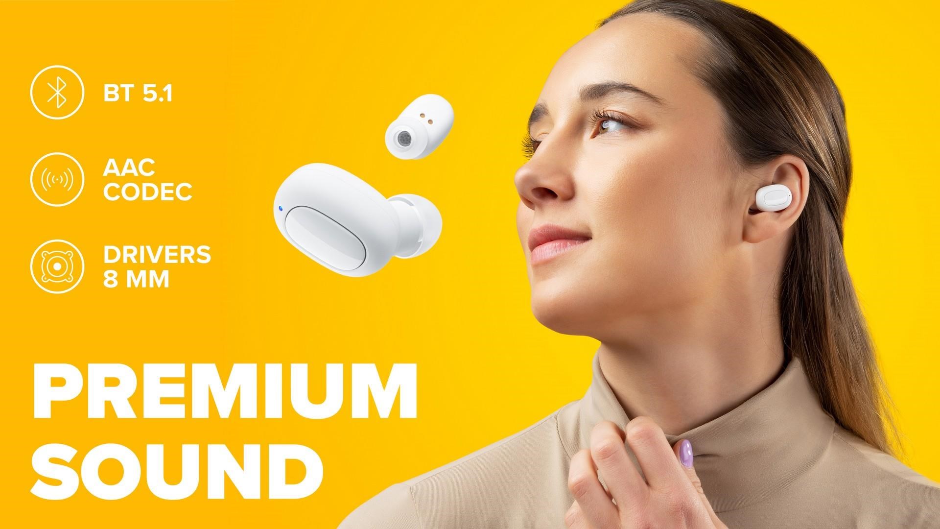 Opladningsbase (500 mAh), USB-C opladningskabel, 3 par ørespidser