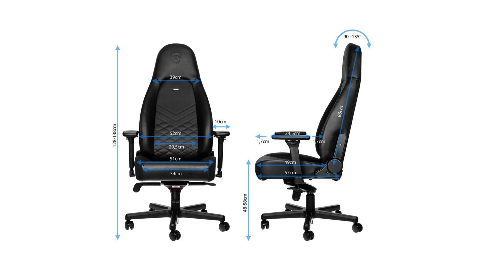 noblechairs NBL-ICN-PU-BLA er en luksuriøs gaming- og kontorstol, designet med fokus på komfort og ergonomi. Stolen er beklædt med høj kvalitet PU-imitation læder, som sikrer en langvarig holdbarhed og let vedligeholdelse. Denne stol er ideel til både gamere og professionelle, der tilbringer mange timer foran computeren og ønsker optimal støtte til kroppen.