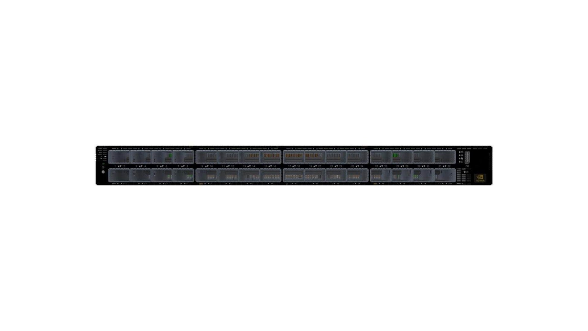 InfiniBand NDR Link support, nulstillingsknap, 7 blæsere, ToR, NVIDIA SHARP, RDMA support, QoS, adaptiv routing, overbelastningsstyring, selvhelbredende netværk