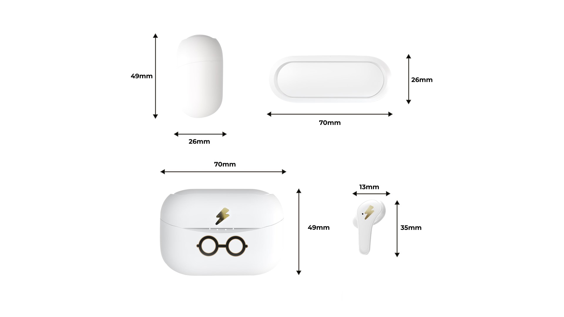 USB-opladerkabel, 1 par ørespidser (large), 1 par ørespidser (small), opladningsbase (350 mAh)