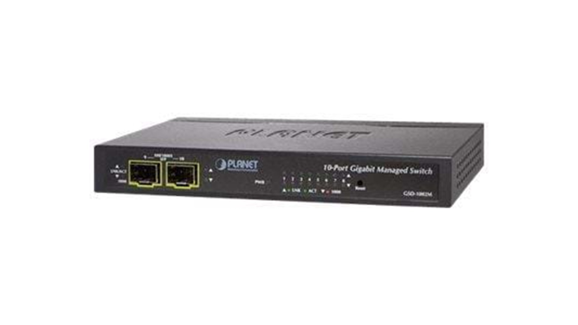 PLANET GSD-1002M er en administreret desktop-switch, der tilbyder 8 porte med understøttelse af hastigheder på 10/100/1000 Mbps samt 2 yderligere porte til Gigabit SFP. Dette produkt er ideelt til at opbygge et pålideligt og effektivt netværk for både små kontorer og større virksomheder, der kræver stabilitet og høj dataoverførsel.
