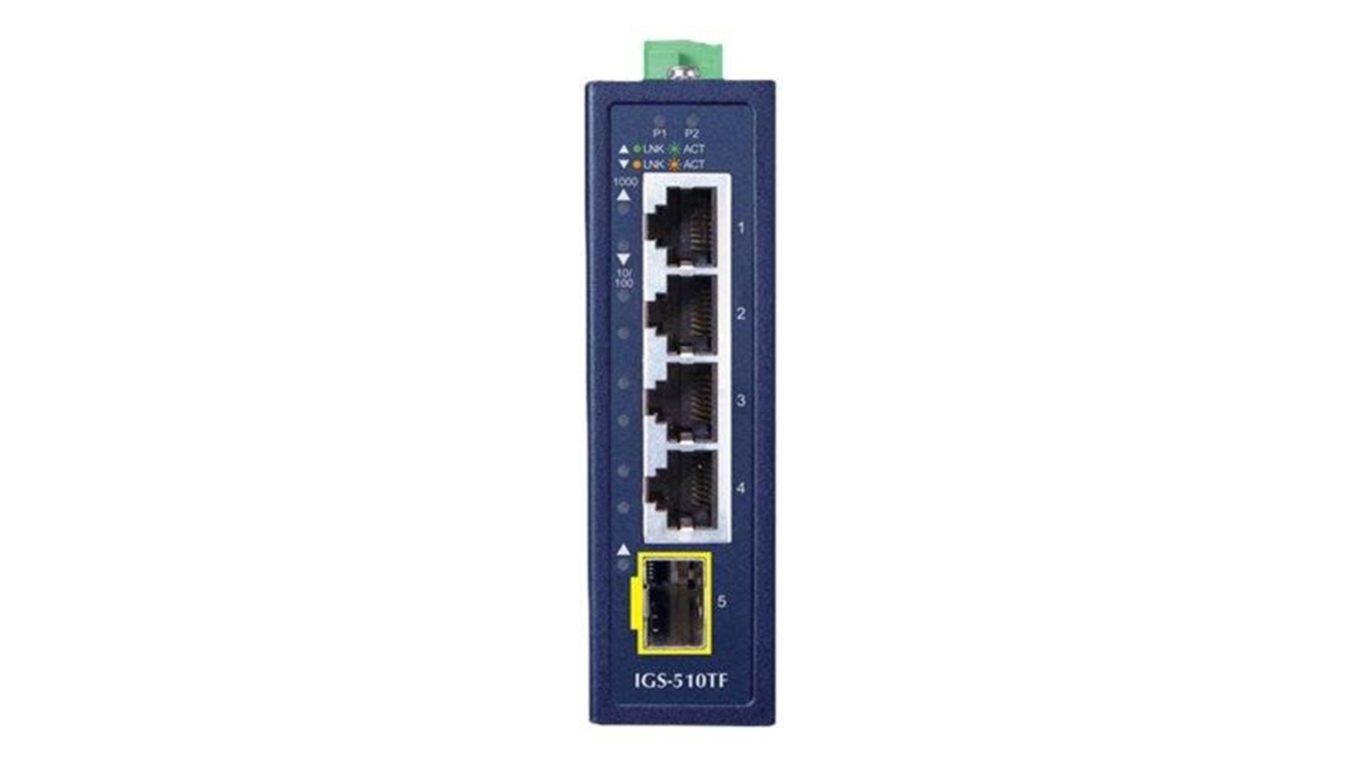 PLANET IGS-510TF er en industriel Gigabit Ethernet-switch, der fungerer med 5 porte - 4 porte med 10/100/1000BASE-T og 1 porte med 100/1000BASE-X SFP, hvilket gør den ideel til at opfylde kravene i både kontor- og industrielle omgivelser. Denne switch er ikke administreret, hvilket gør installation og drift enkel og hurtig uden behov for kompleks konfiguration. Den kompakte størrelse gør det muligt at installere den i trange rum, samtidig med at den leverer pålidelig og kontinuerlig dataoverførsel, selv under udfordrende forhold.