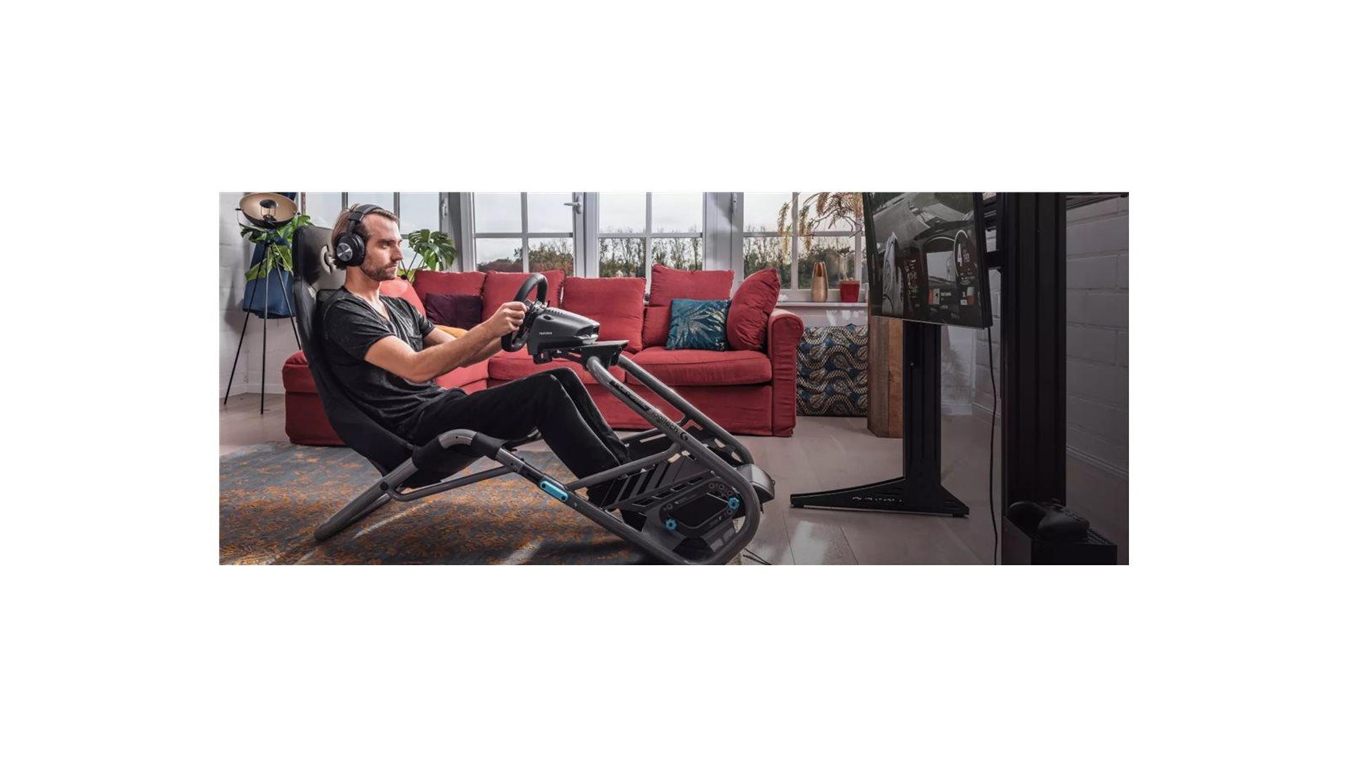 Åndbar, justerbar styrehjulsplade, justerbar pedalplade, kompatibel med alle rat og pedaler, rammeløs struktur