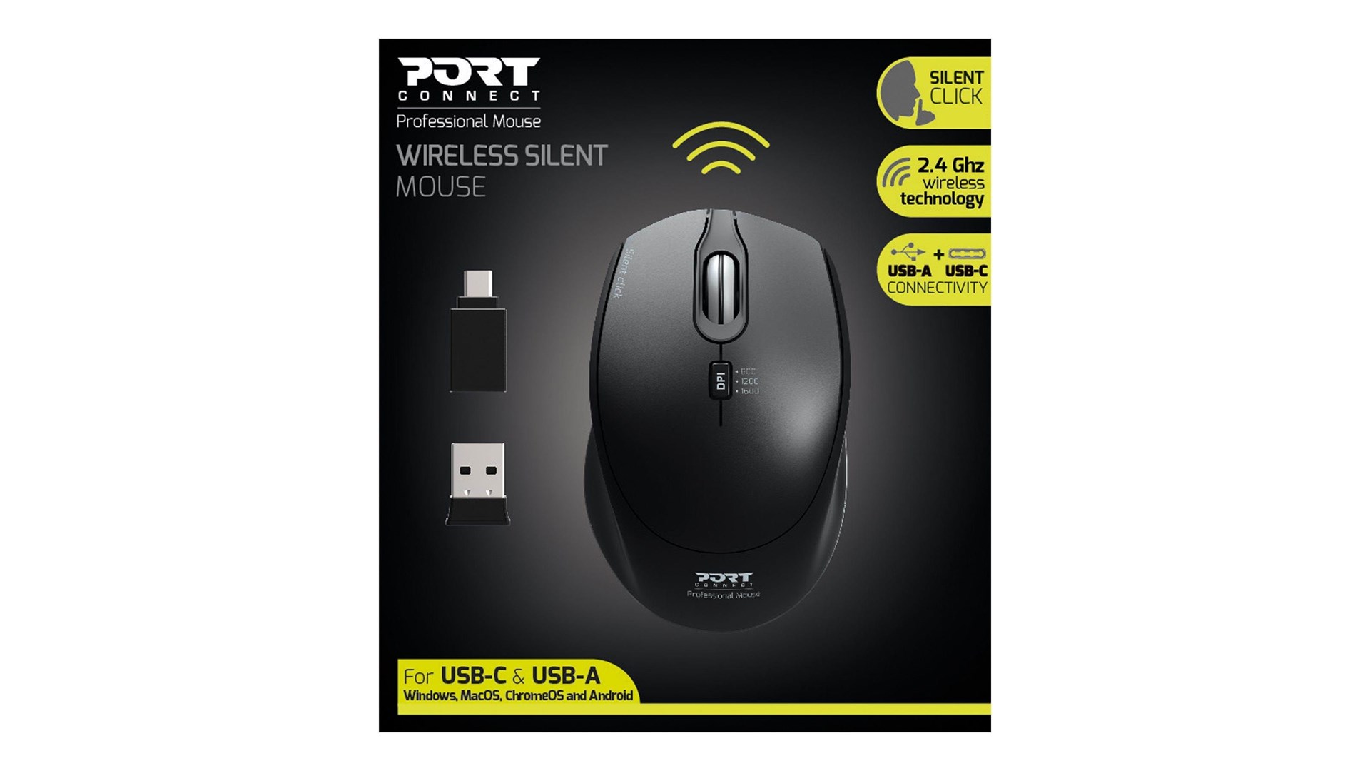 PORT Designs 900713 er en trådløs optisk mus, designet til at imødekomme både professionelle og hjemmebrugeres behov. Denne mus er udstyret med den nyeste 2.4 GHz trådløse teknologi, hvilket sikrer en stabil forbindelse uden forstyrrelser. Med en rækkevidde på op til 20 meter giver den friheden til at navigere hurtigt og effektivt, uanset hvor du befinder dig i rummet. Musen er udstyret med både USB-A og USB-C modtagere, hvilket gør den kompatibel med en bred vifte af enheder, herunder laptops og pc'er, hvilket er ideelt for folk der bruger forskellige gadgets dagligt.