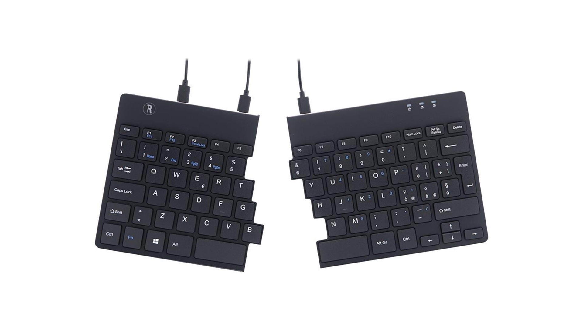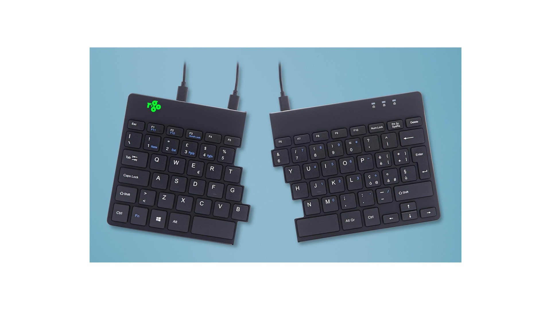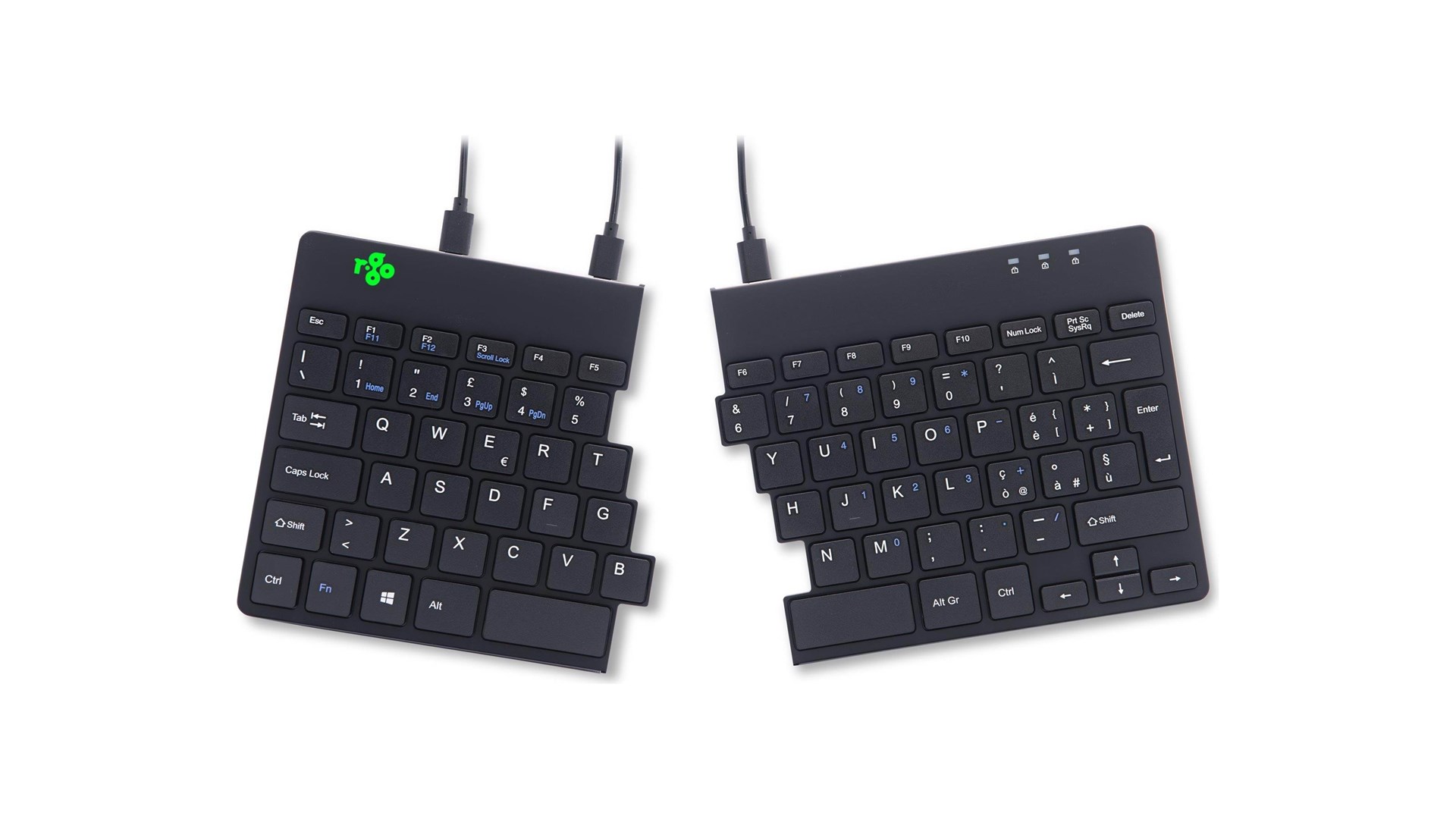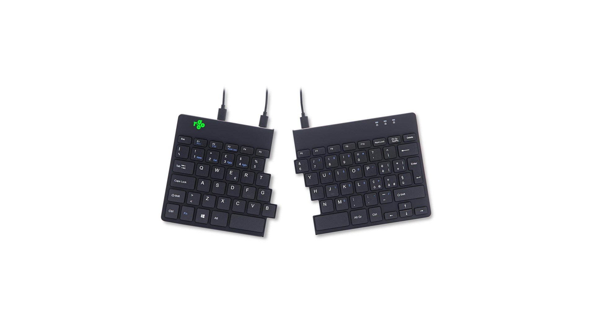 R-Go Tools RGOSP-ITWIBL er et ergonomisk split-tastatur designet specielt til at forbedre skriveoplevelsen samtidig med at det forebygger belastningsskader. Med et moderne og stilrent design fremstår tastaturet både funktionelt og æstetisk tiltalende. Det er udstyret med et italiensk QWERTY layout, der gør det ideelt for brugere, der foretrækker dette sprog og tastaturlayout i deres daglige arbejde.