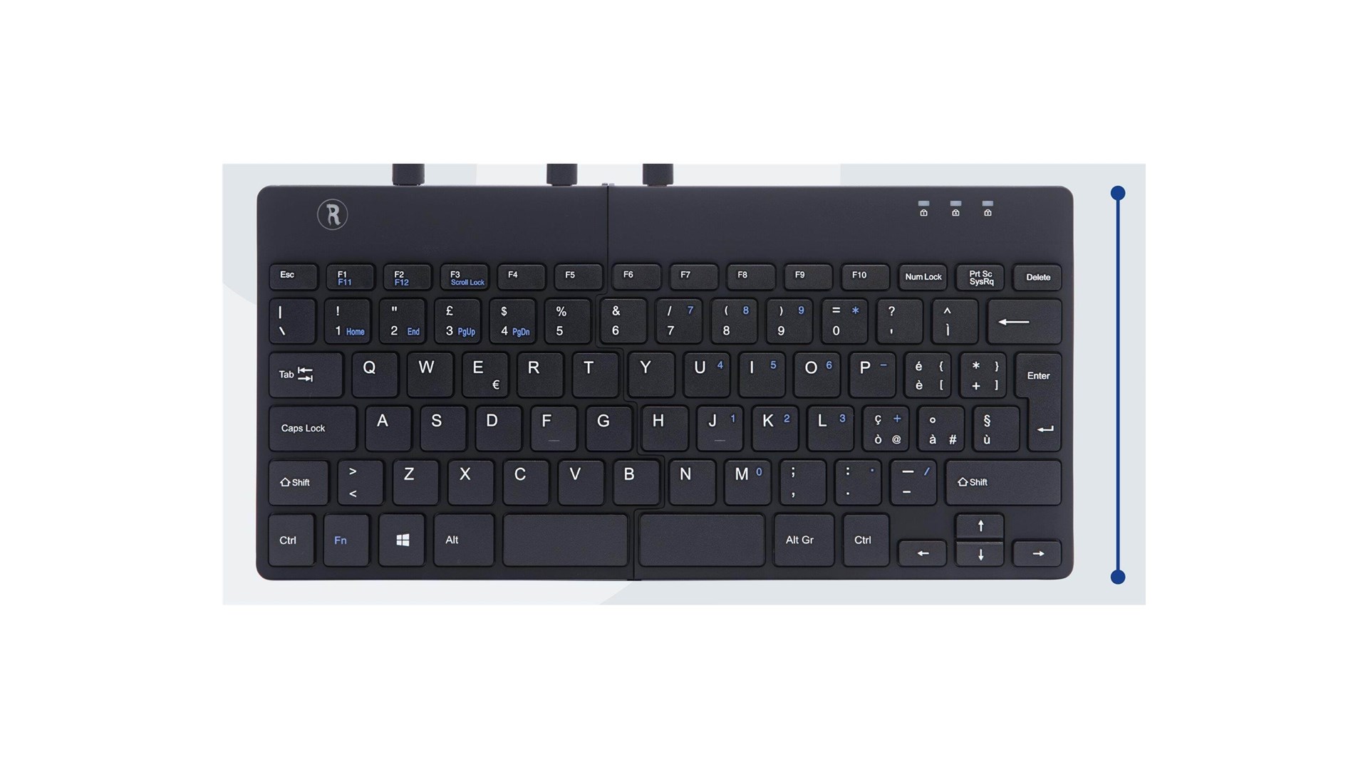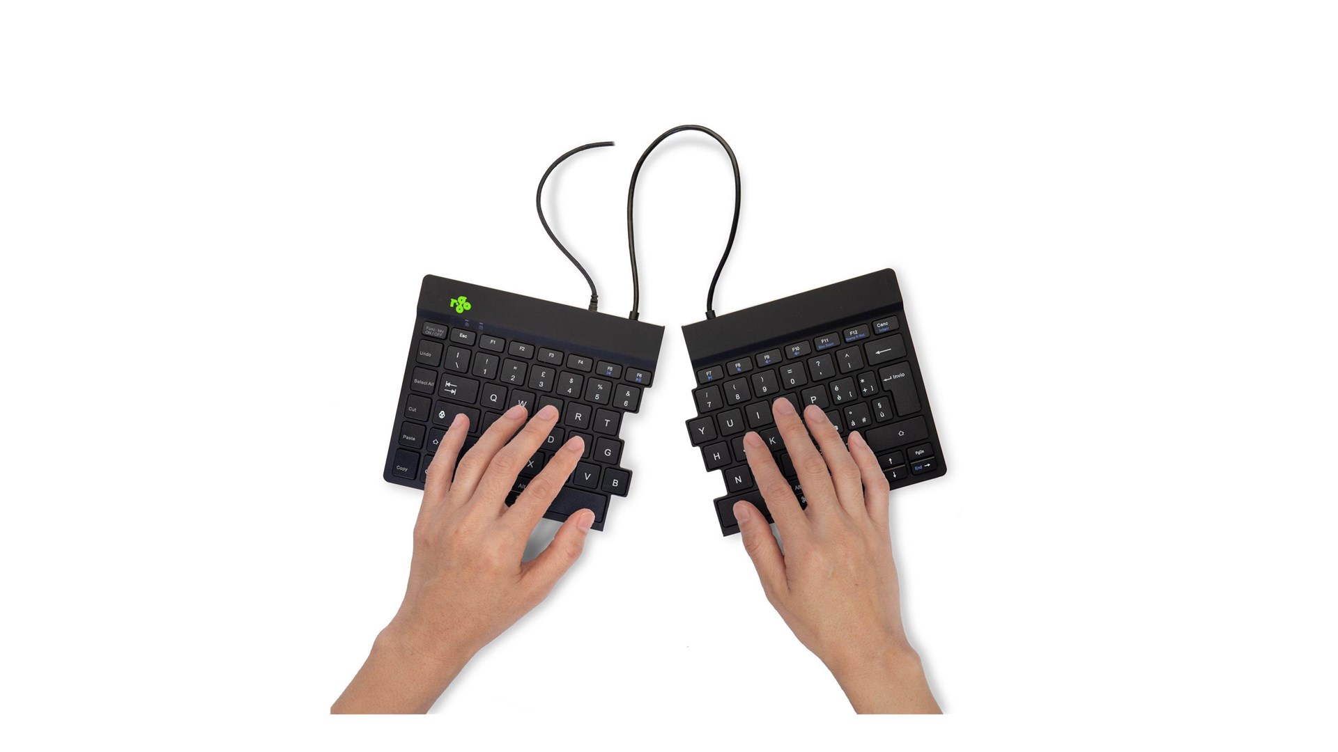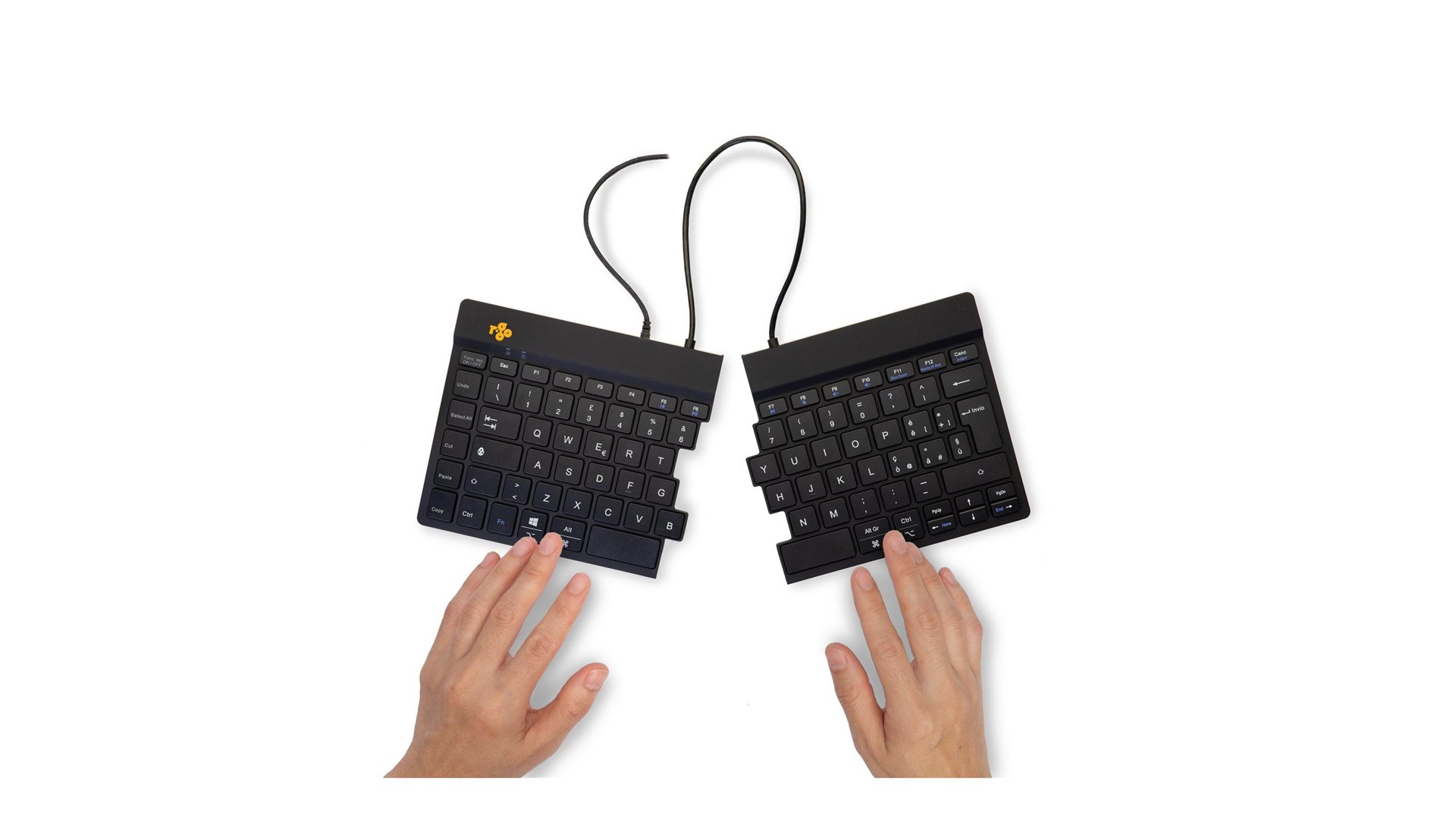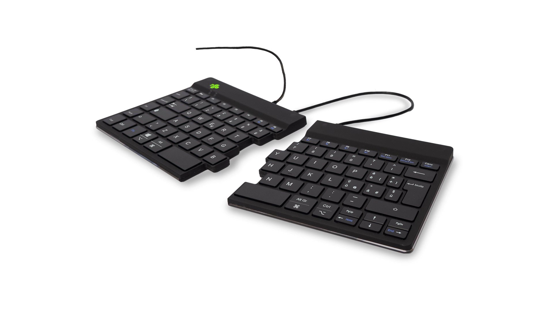 R-Go Tools RGOSP-ITWIBL er et ergonomisk split-tastatur designet specielt til at forbedre skriveoplevelsen samtidig med at det forebygger belastningsskader. Med et moderne og stilrent design fremstår tastaturet både funktionelt og æstetisk tiltalende. Det er udstyret med et italiensk QWERTY layout, der gør det ideelt for brugere, der foretrækker dette sprog og tastaturlayout i deres daglige arbejde.