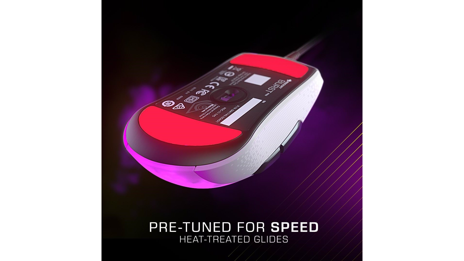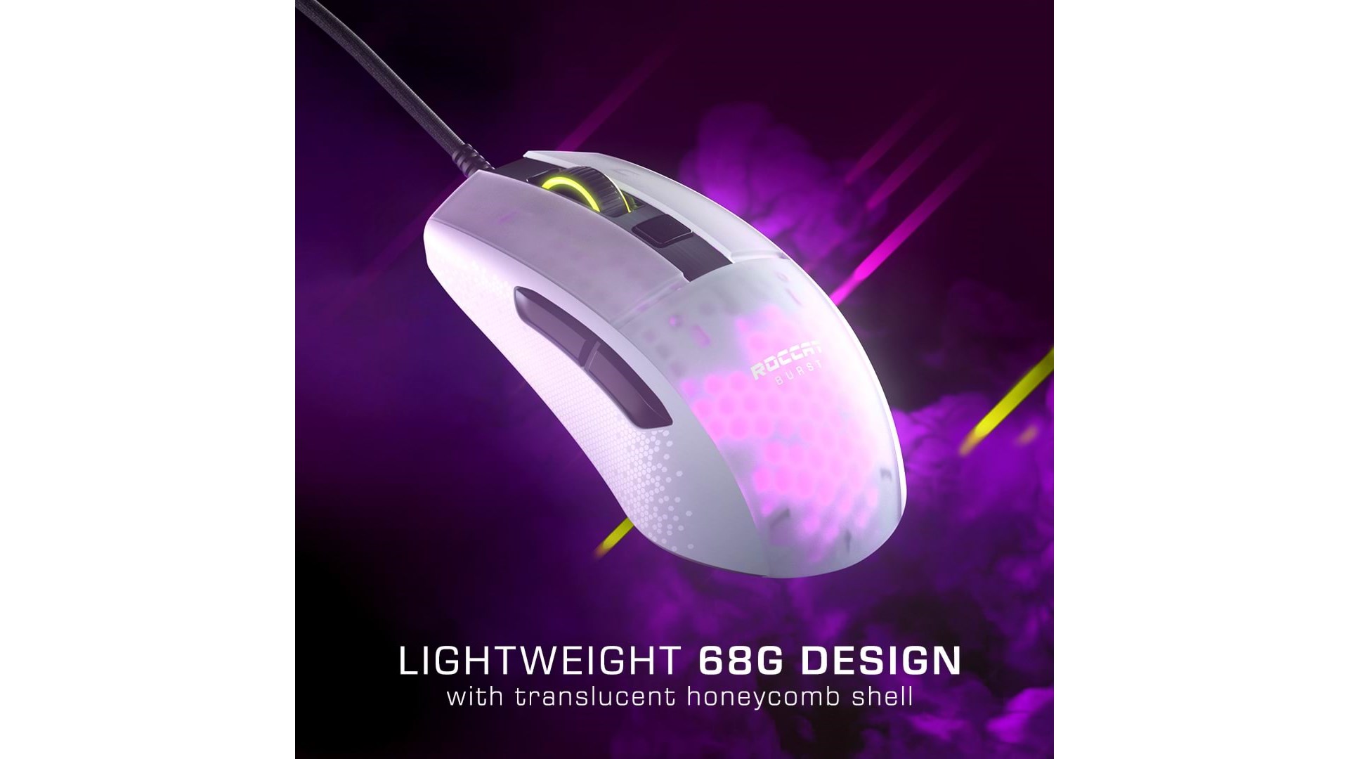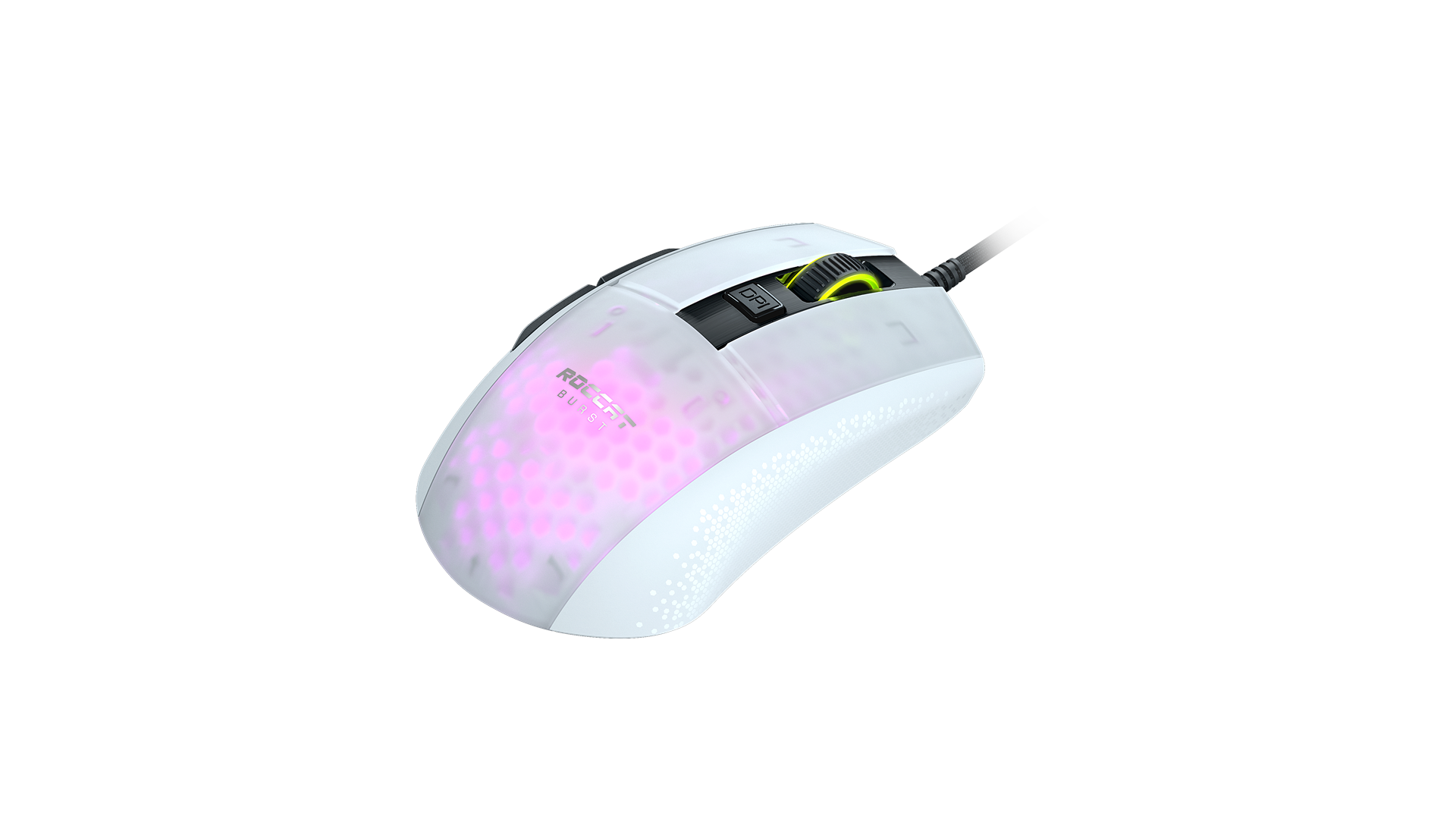 Scrollhjul, polytetrafluoroethylene (PTFE) feet, EasyShift[+] knap, justerbar elevatordistance, Owl-Eye optisk sensor, bikageskal-kabinet, ROCCAT Titan Switch Optical, AIMO lighting system
